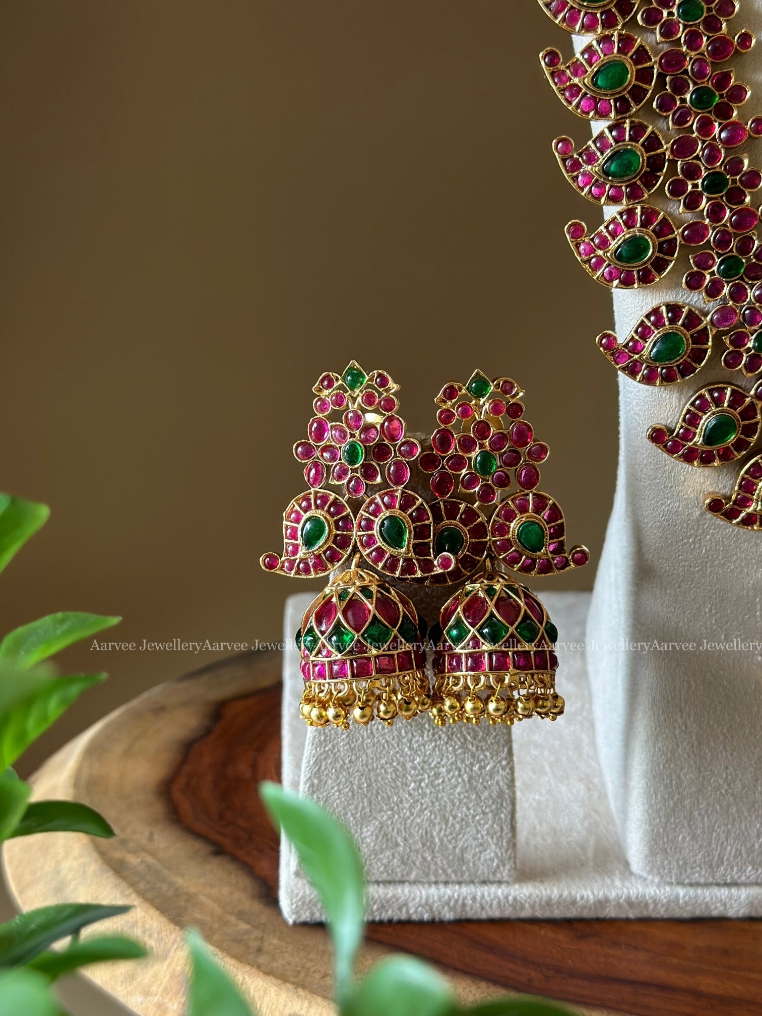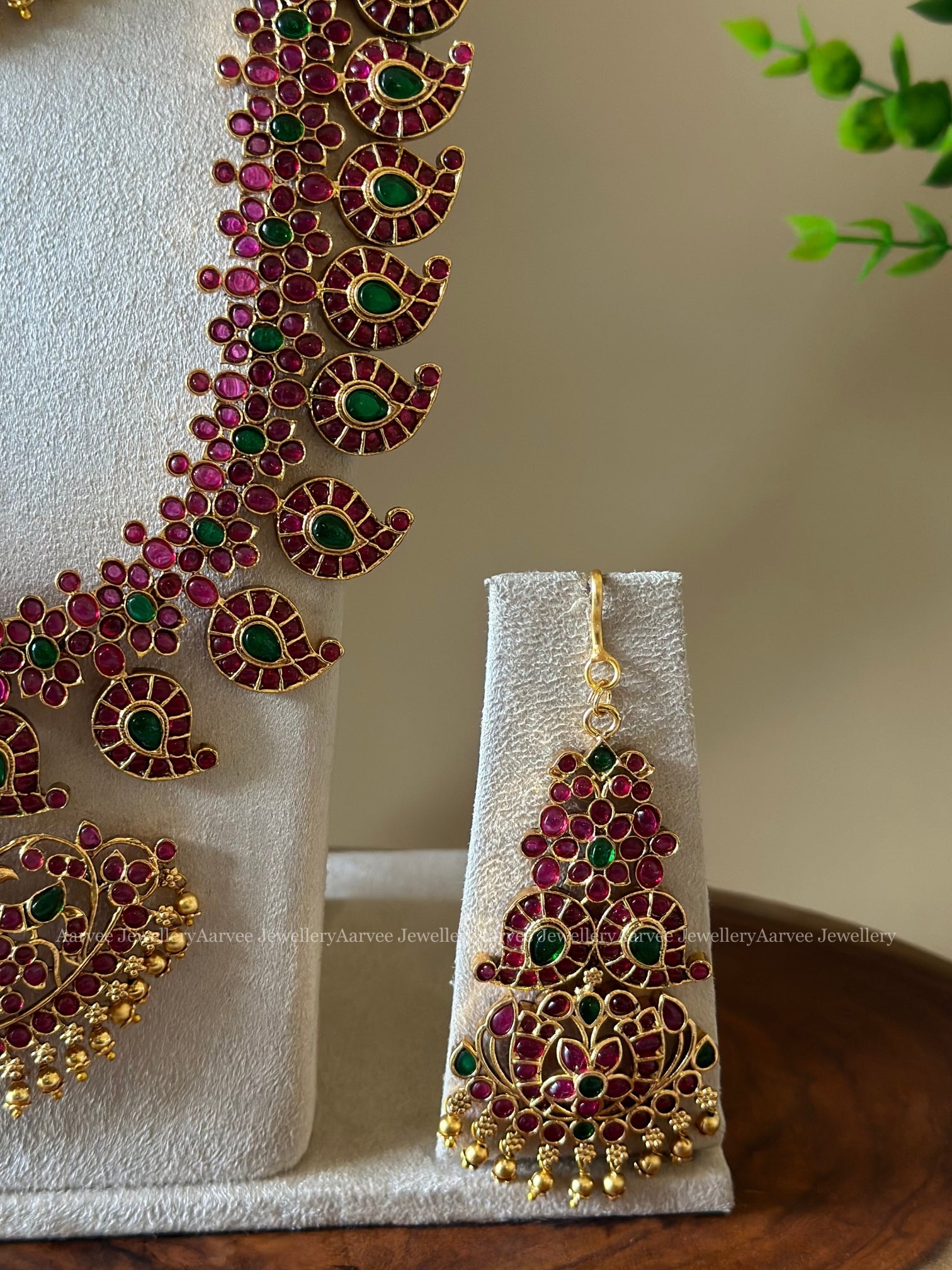 A CLASSIC KEMP SEMI BRIDAL JEWELLERY SET | MANGO MOTIF WITH RUBY STONE & GOLD BEADS