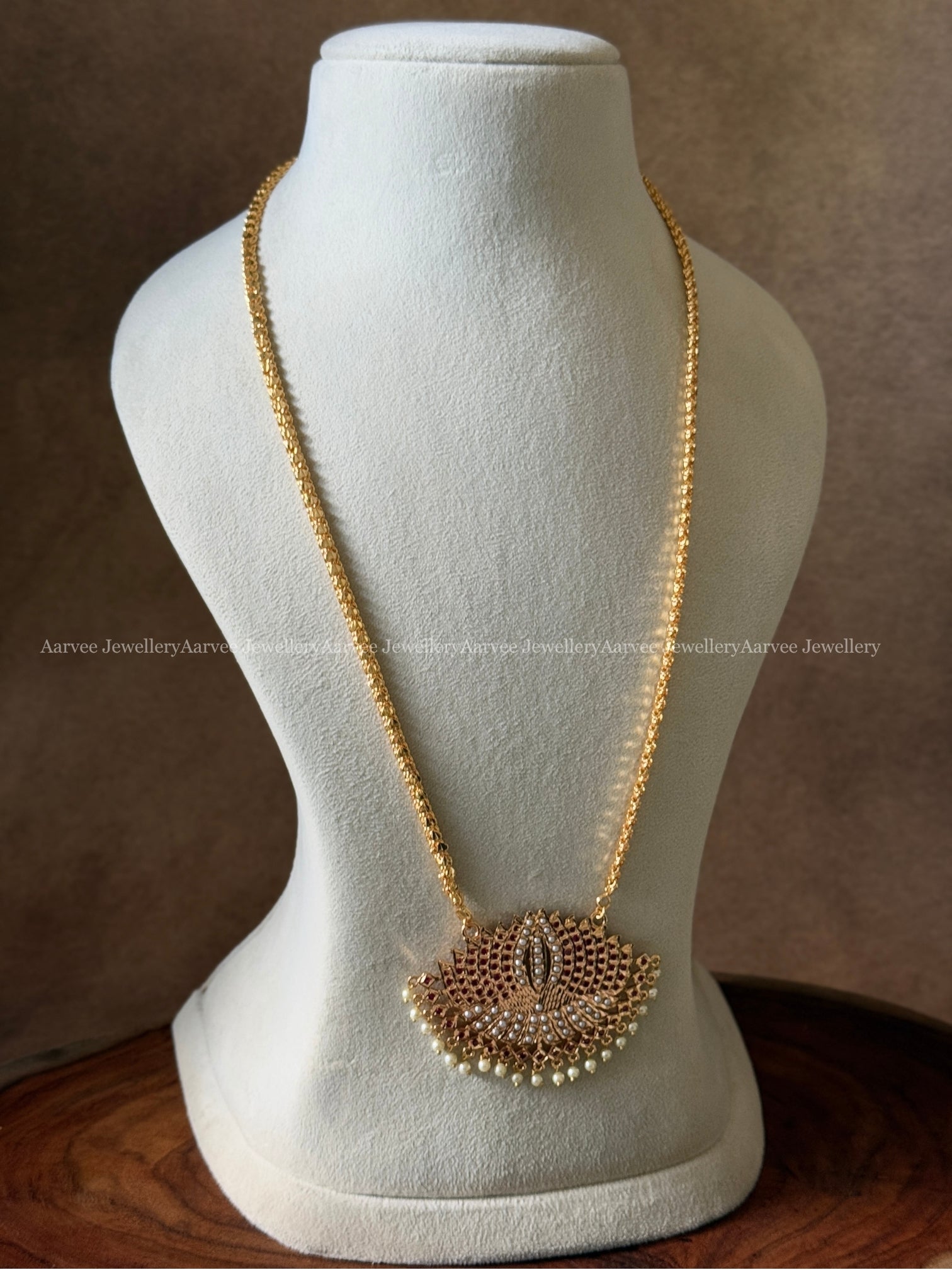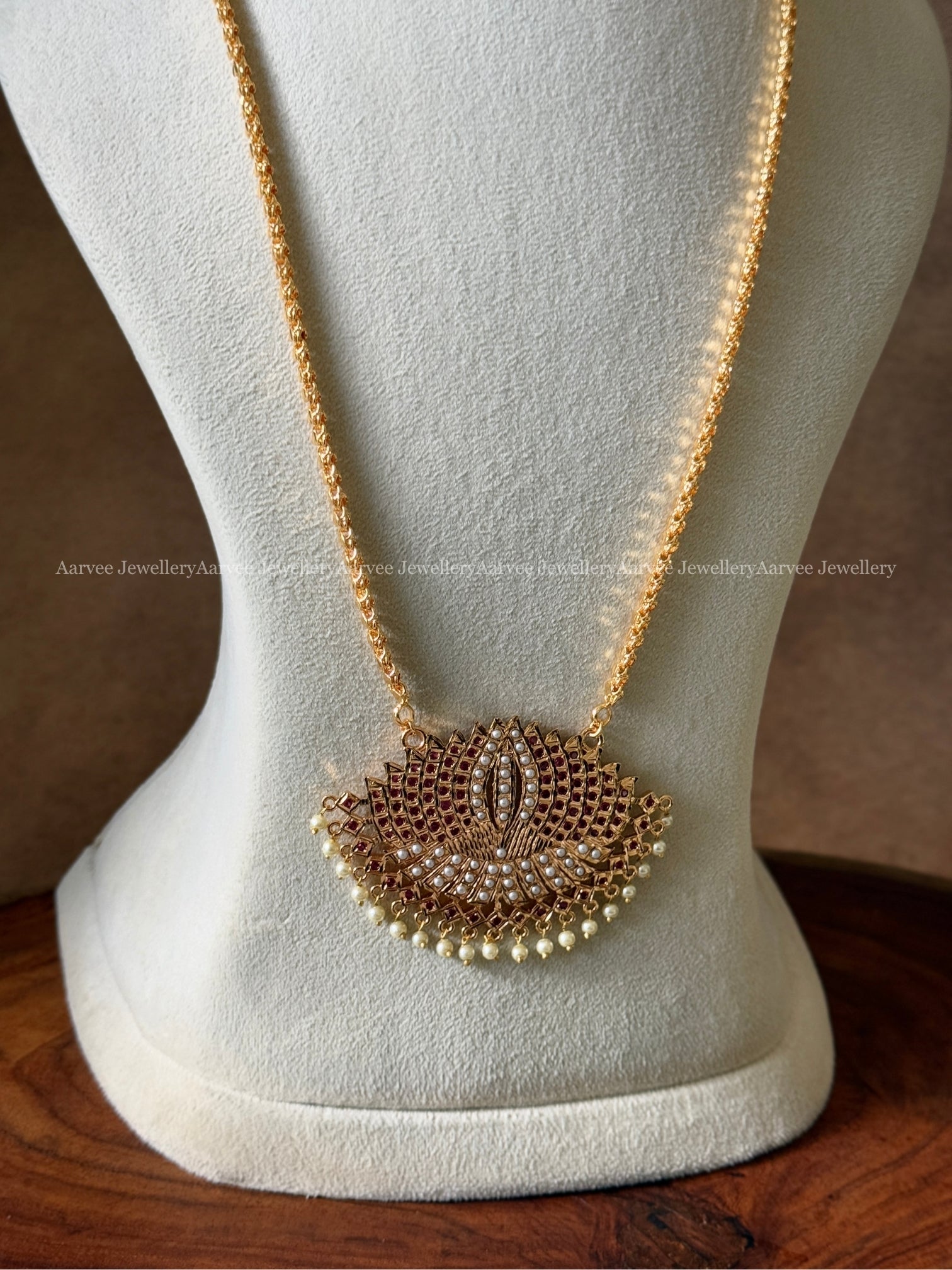 ANTIQUE GOLD CHAIN WITH LOTUS PENDANT IN PEARL BEADS
