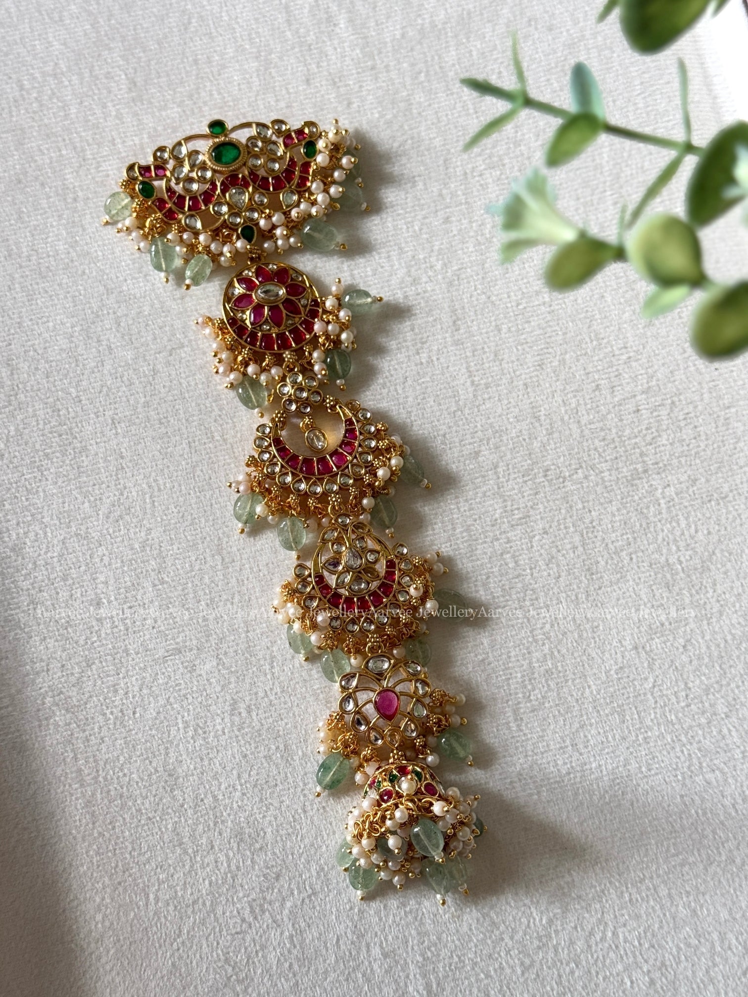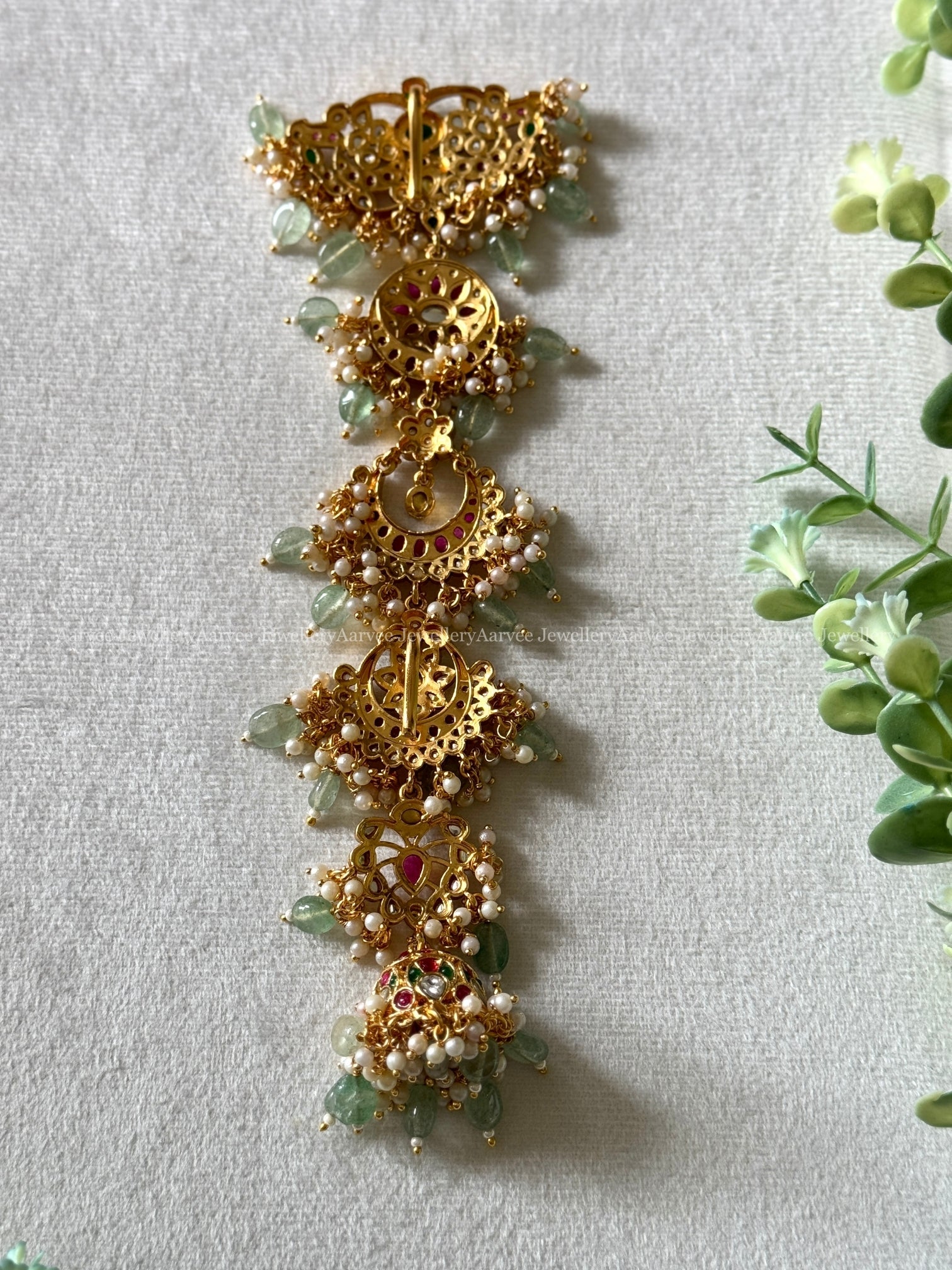 Medium-Length Chand and Floral Hair Accessory with Multicolor Kemp Stones and Pastel Beads