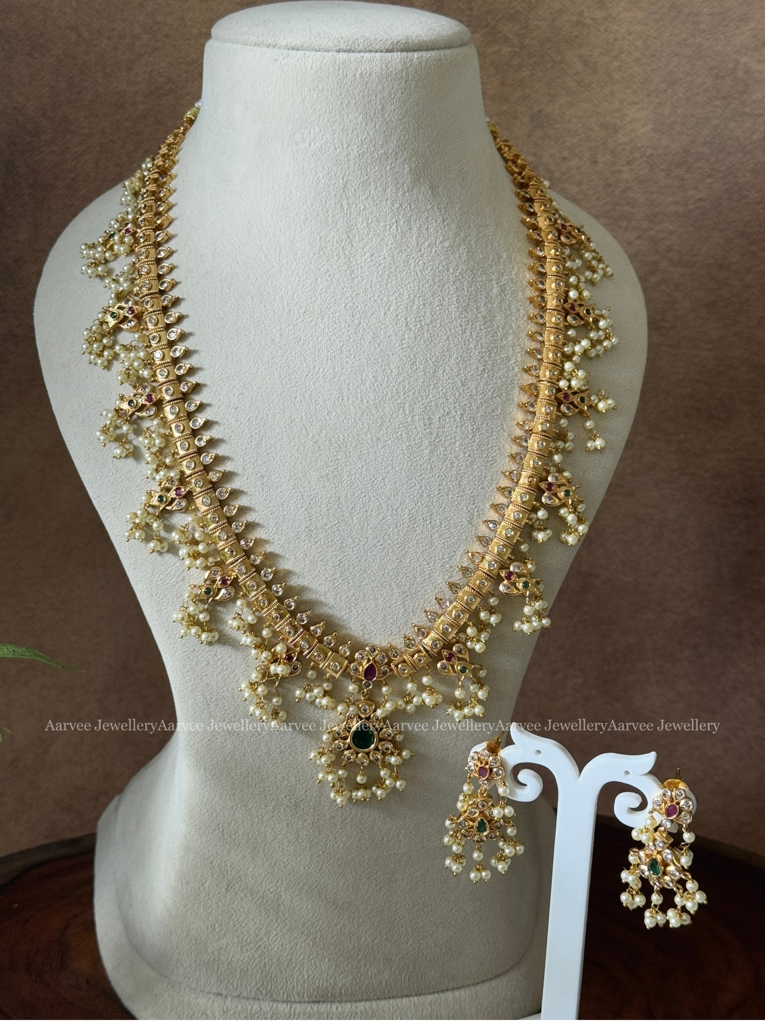 CLASSIC GOLD FINISH GUTTA PUSALU HARAM SET WITH PEARLS