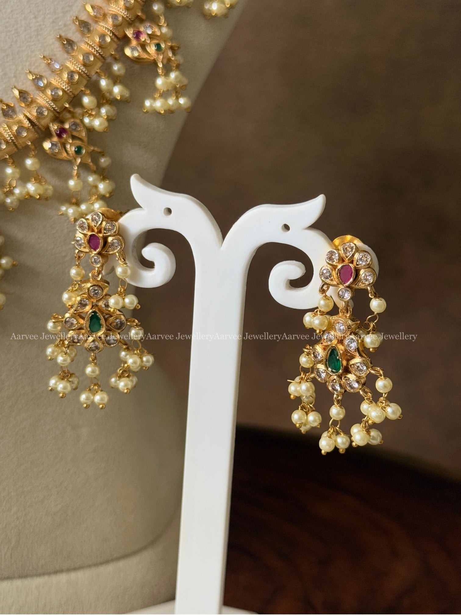 Gold-Plated Gutta Pusalu Haram Set Adorned with Delicate Pearl Strands