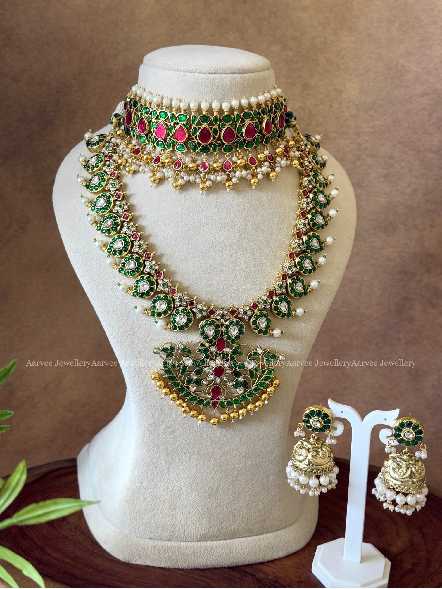 The set Contains : 1 Choker and 1 Mid-length Necklace & 1 Pair of earrings.