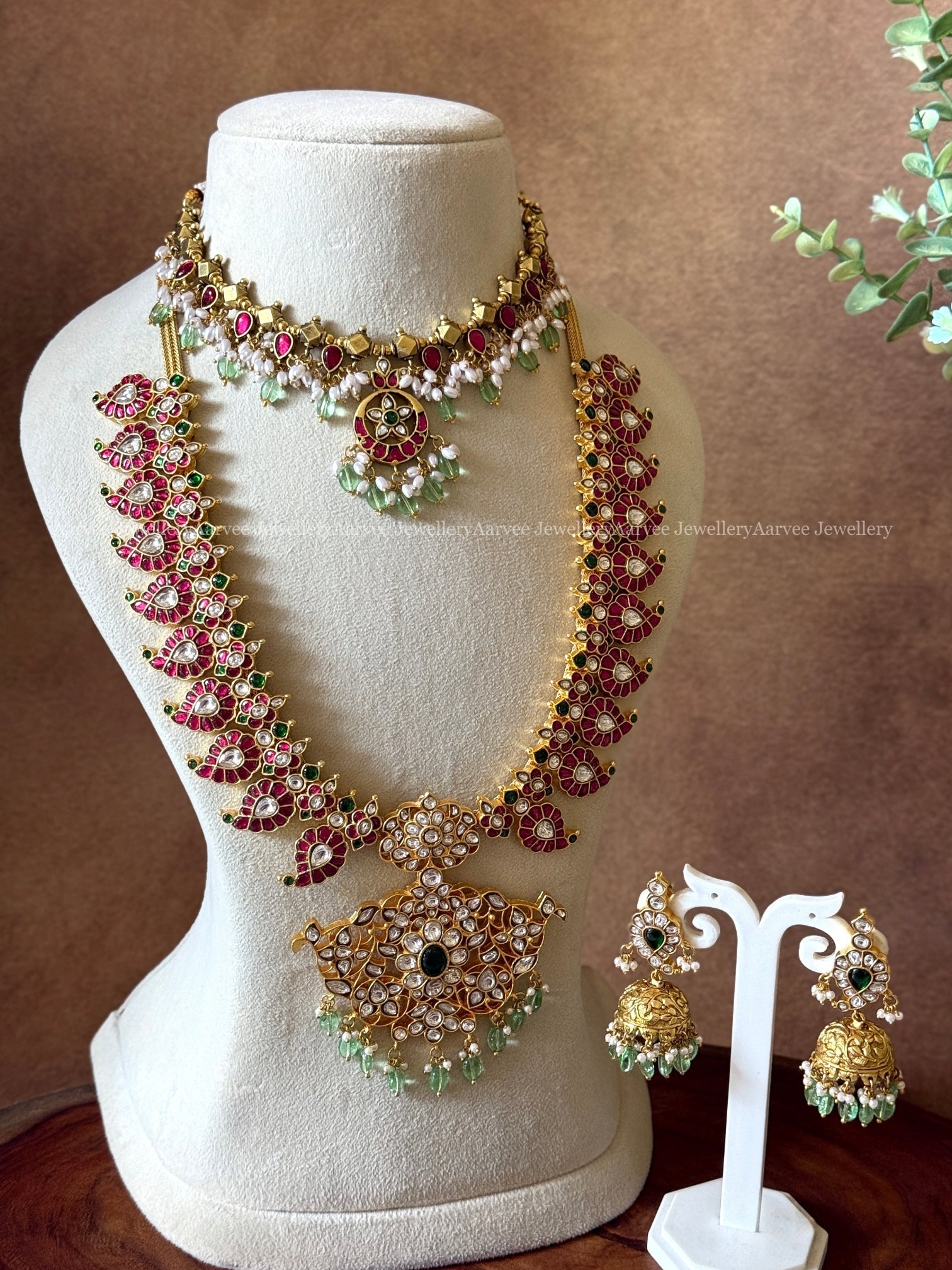 The set Contains : 1 Necklace , 1 Haram & 1 Pair of earrings.