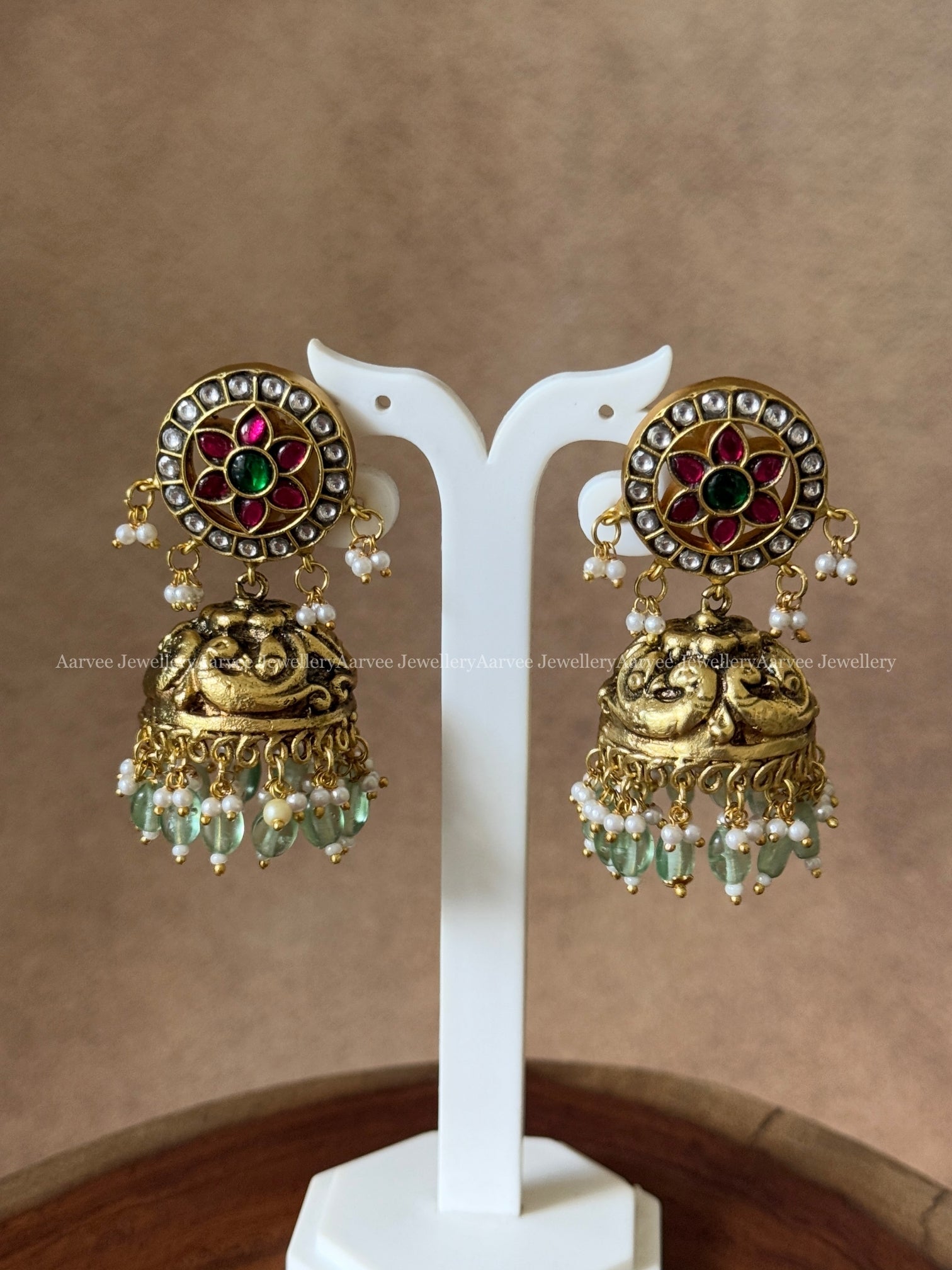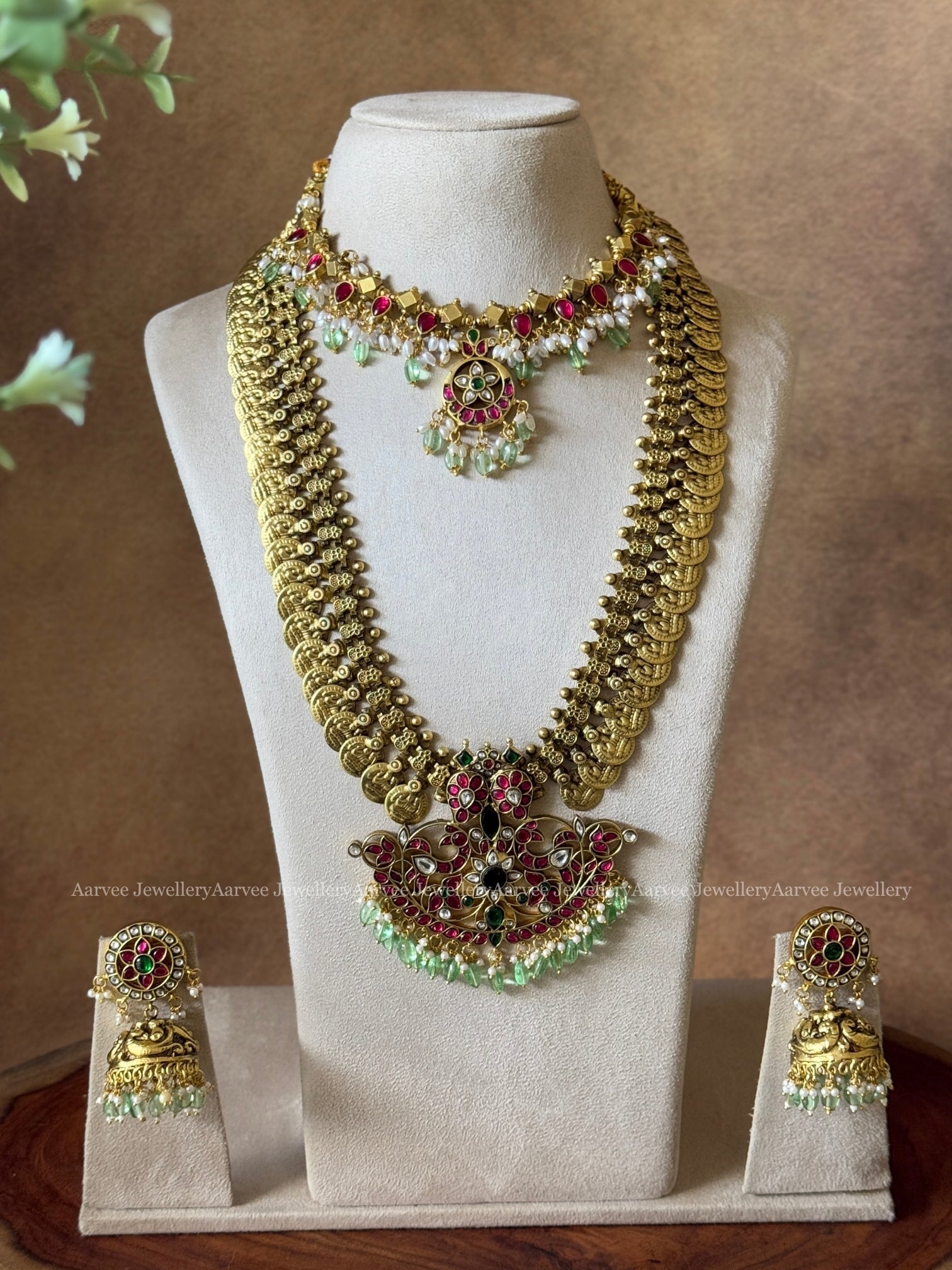 This Contains: Necklace, Mid-length Chain and One Pair of Jhumki