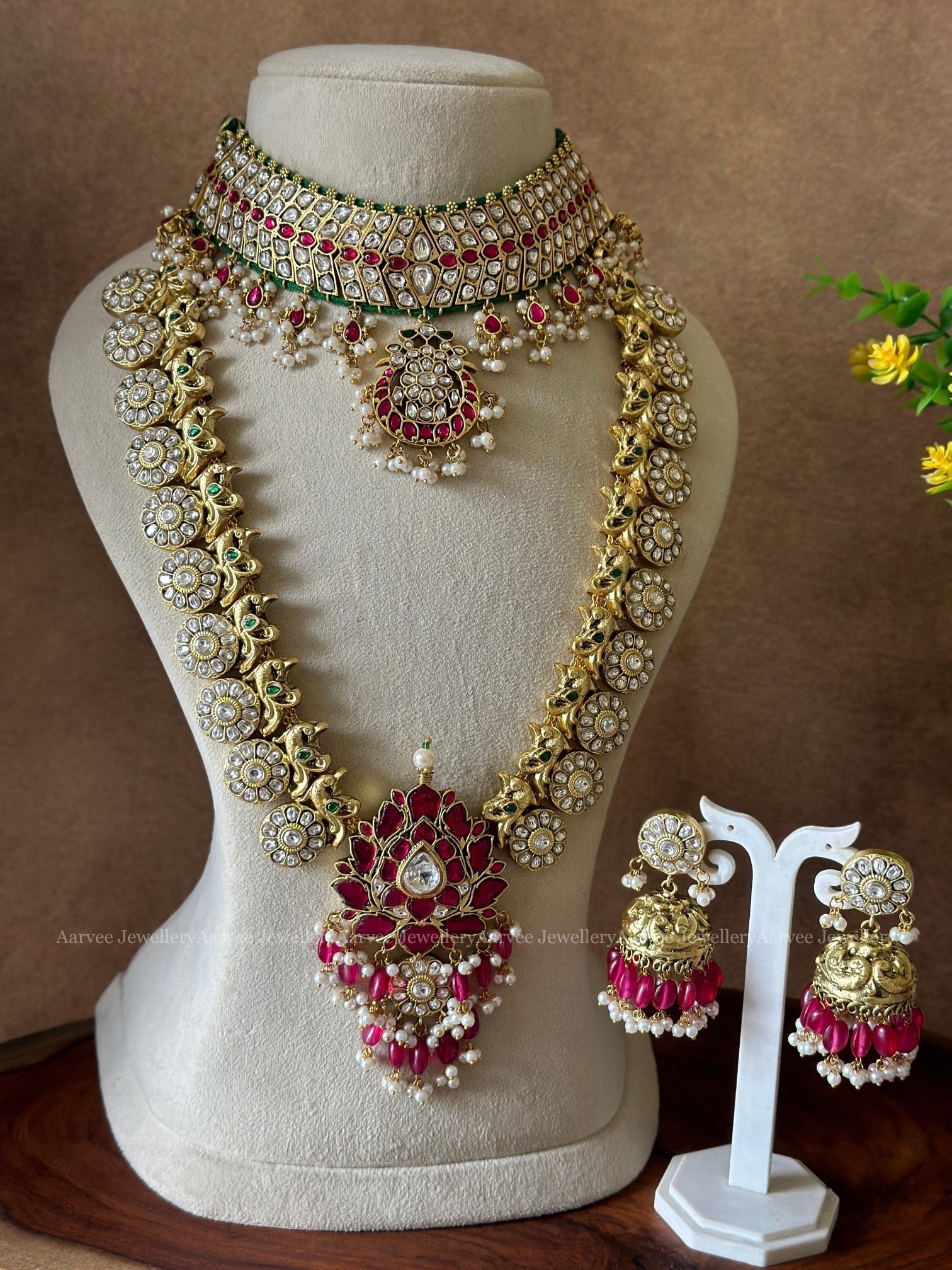 The set Contains : 1 Necklace, 1 Haram and 1 Pair of earrings.