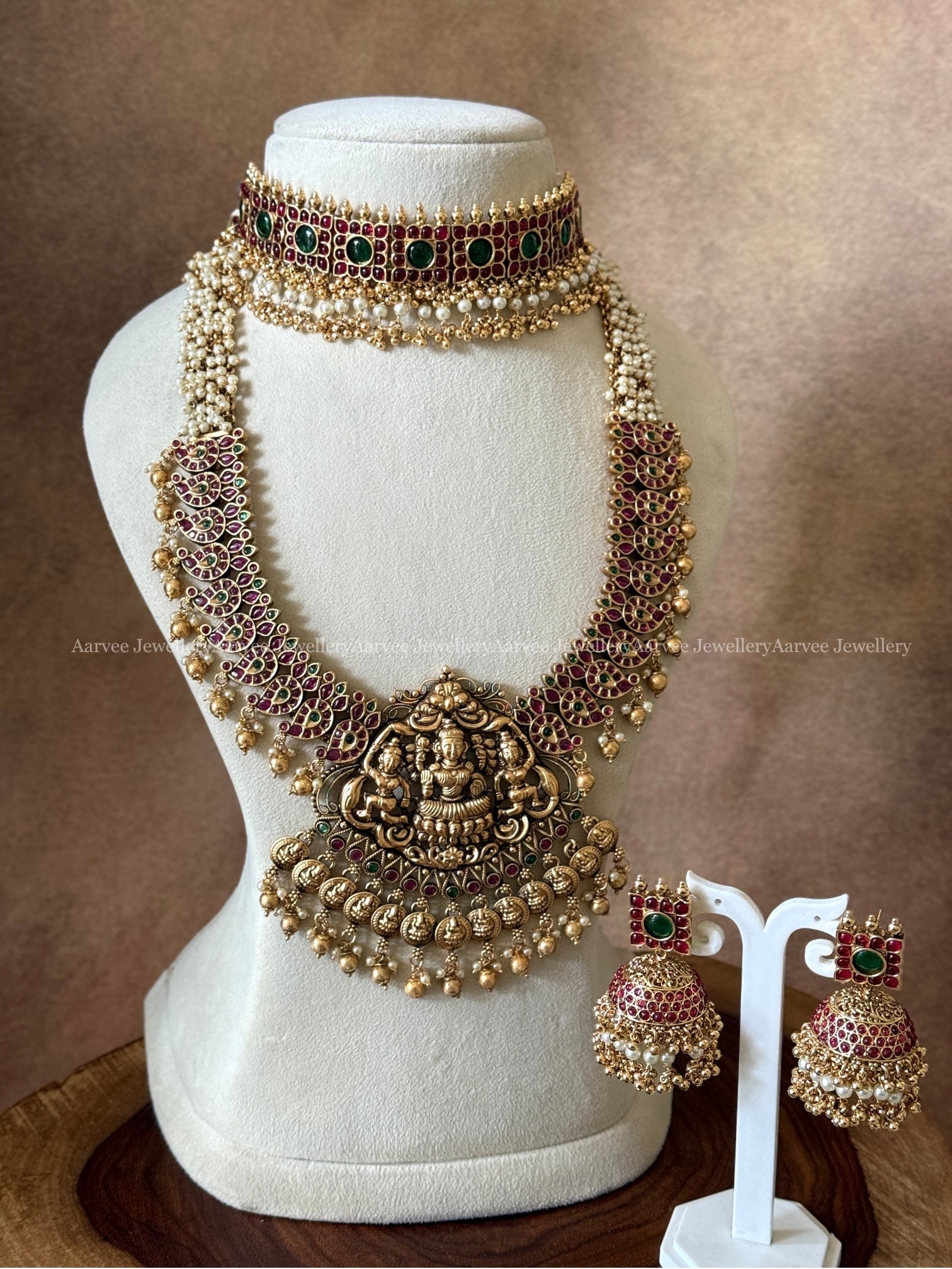 COMBO - KEMP CHOKER WITH MID LENGTH LAKSHMI PENDANT HARAM SET WITH RUBY / GREEN STONES