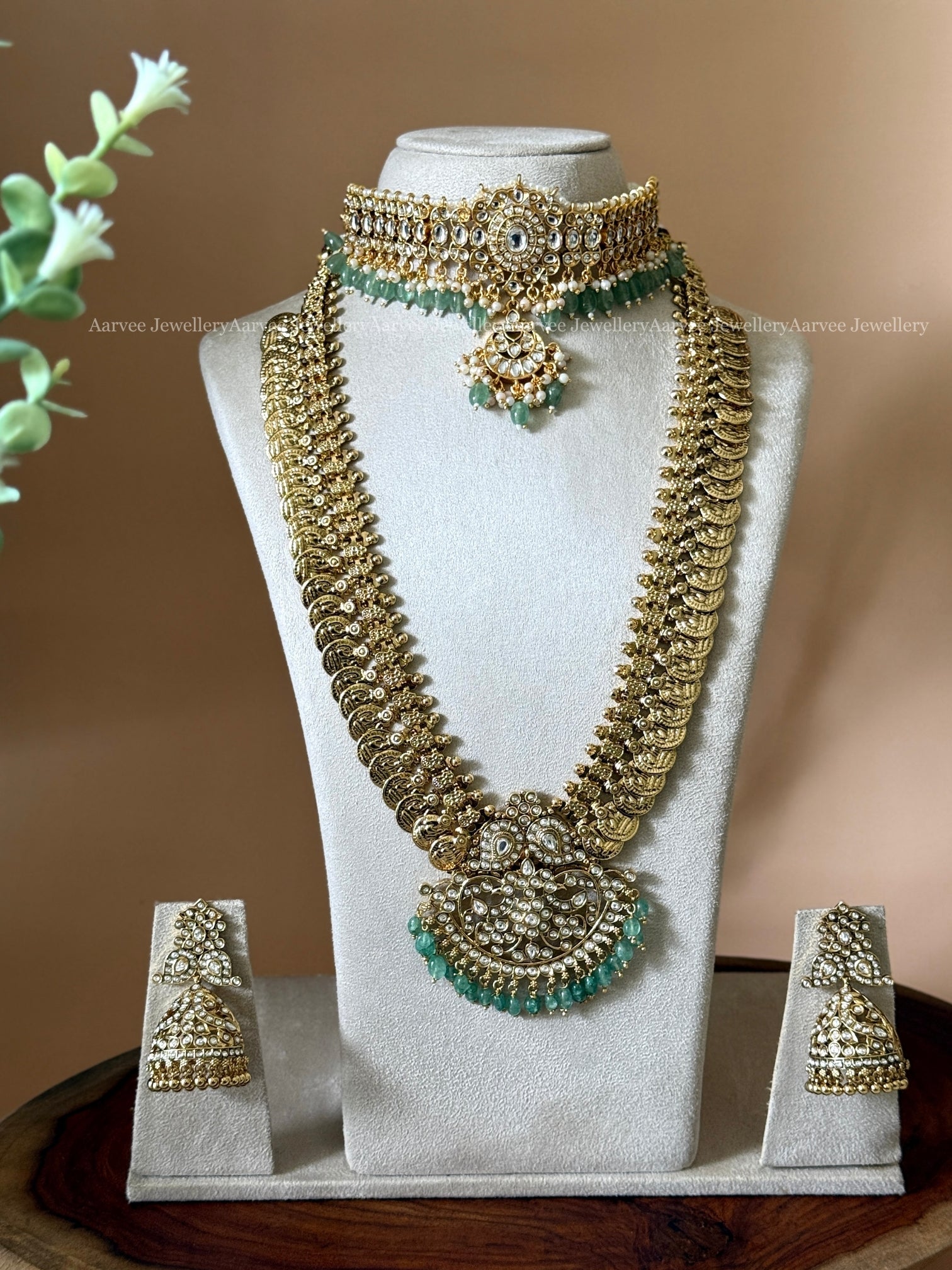 The set contains: 1 Choker, 1 Haram and 1 Pair of Earrings