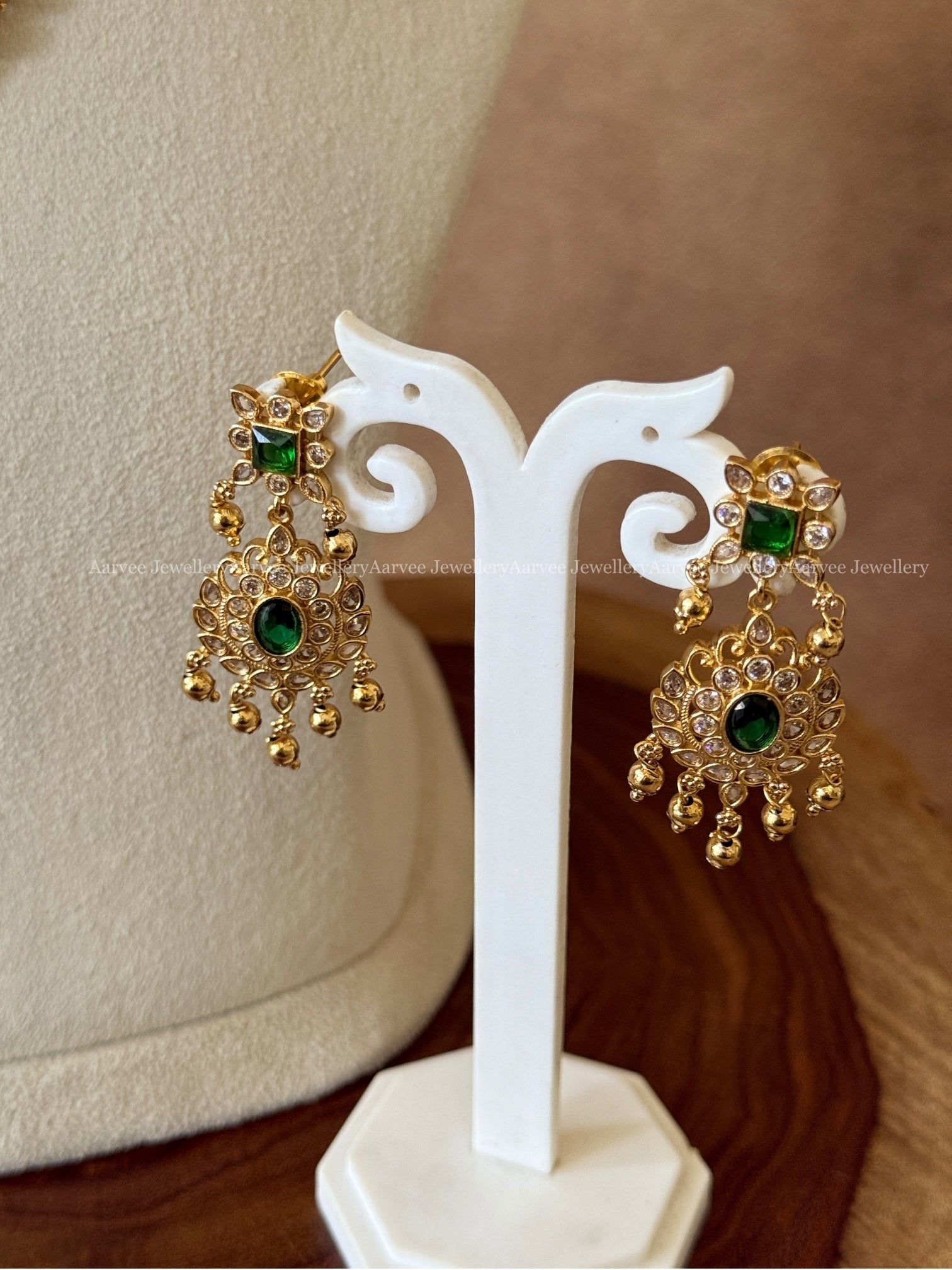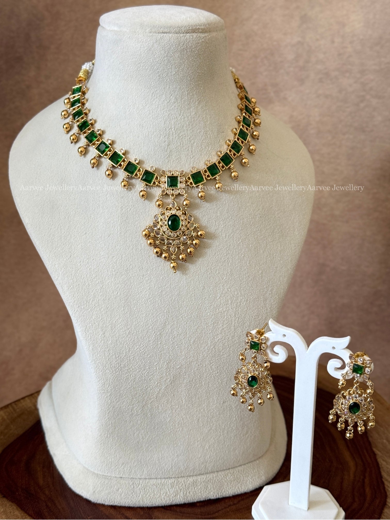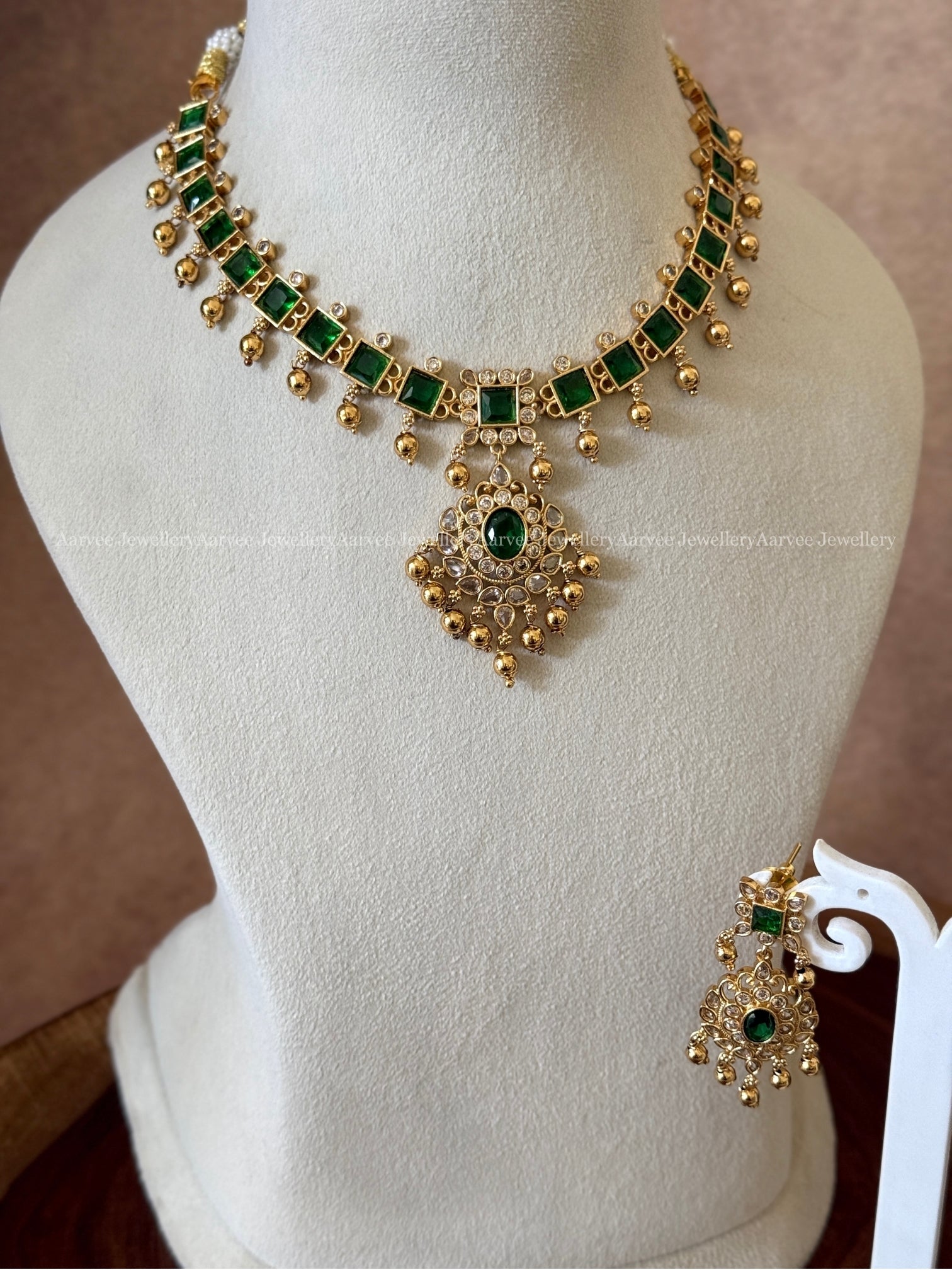 CZ GREEN STONE NECKLACE SET WITH GOLD BEADS