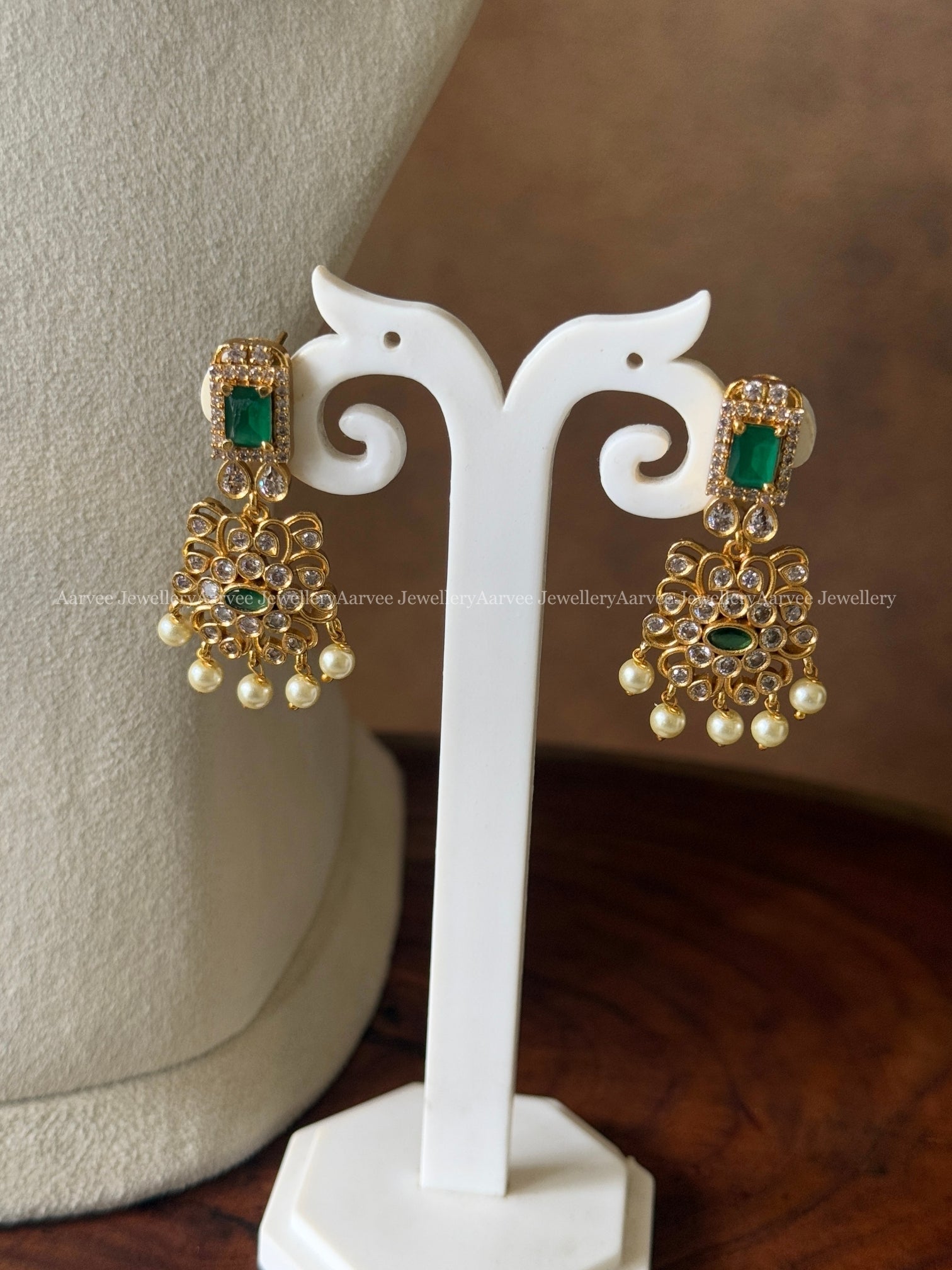 Graceful Necklace Set with CZ Green Stones and Pearl Bead Embellishments