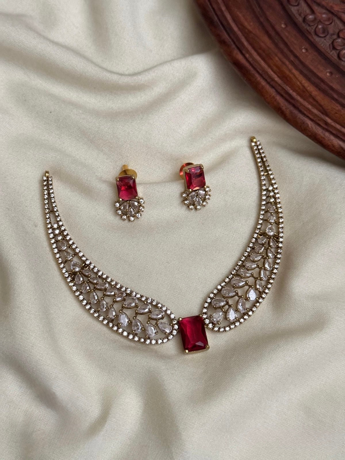 Sparkling CZ Kanti Necklace Set Adorned with Emerald-Ruby Stones