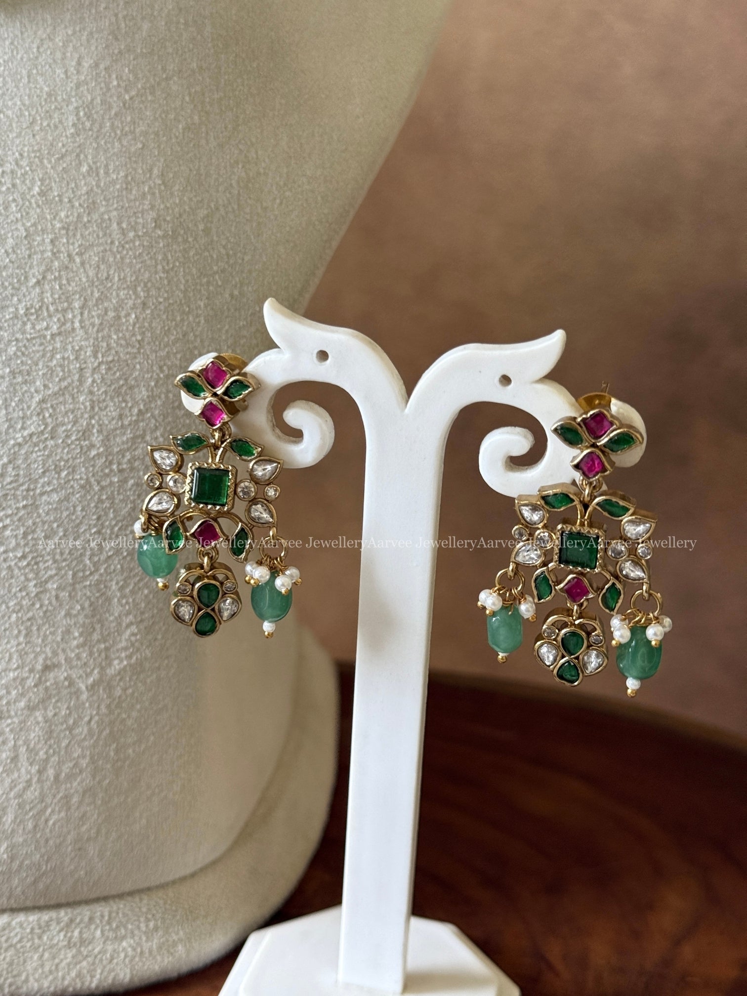 Elegant CZ Necklace Set Featuring White, Green & Pink Stones with Soft Pastel Beads