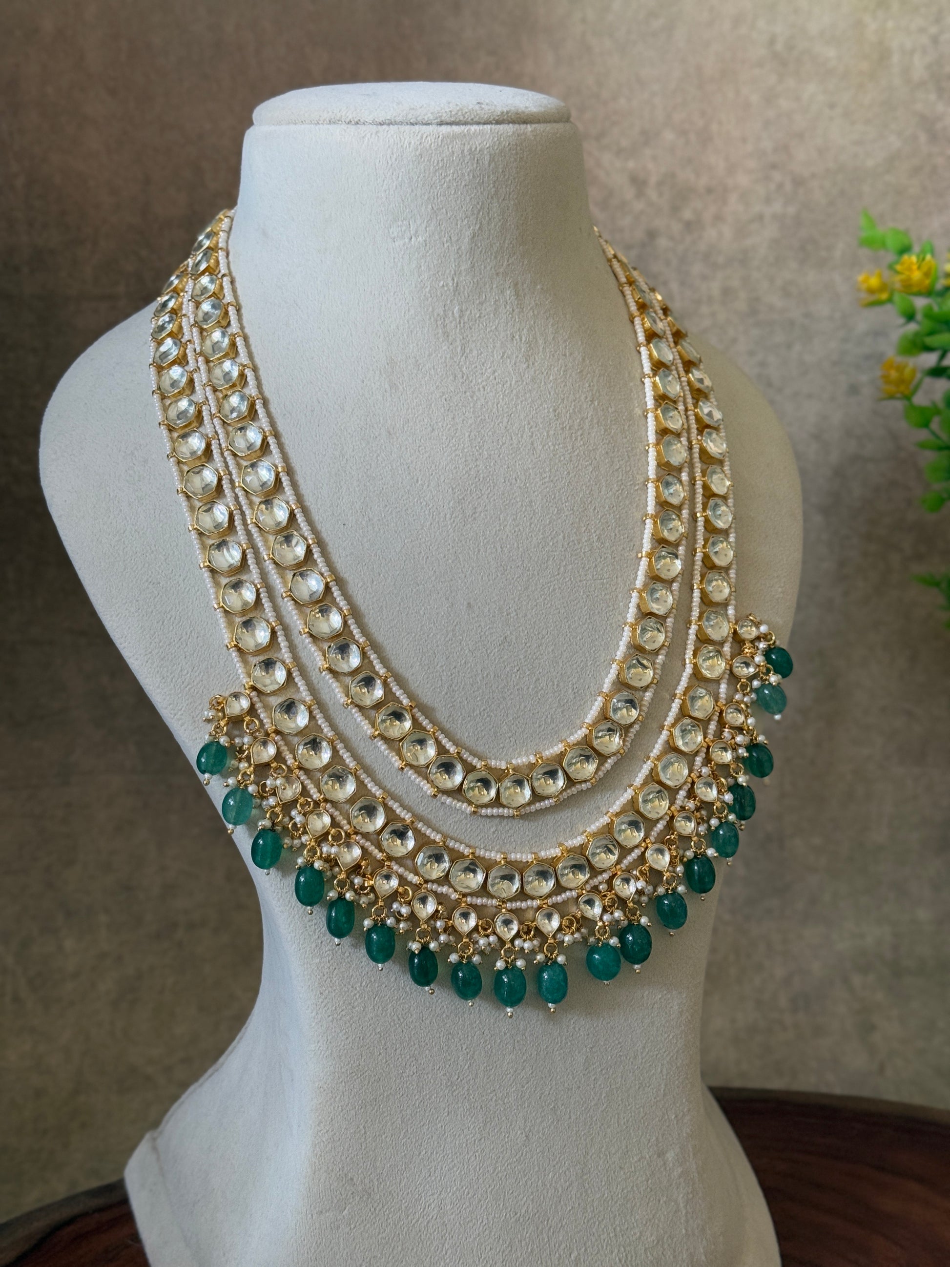 The ELEGANT JEWELLERY SET is the perfect accessory for any outfit. included in Green color beaded With its elegant design, this set is sure to elevate your style and make you stand out. Made with high-quality materials, it offers both durability and sophistication. Add a touch of elegance to your look with this stunning jewellery set.