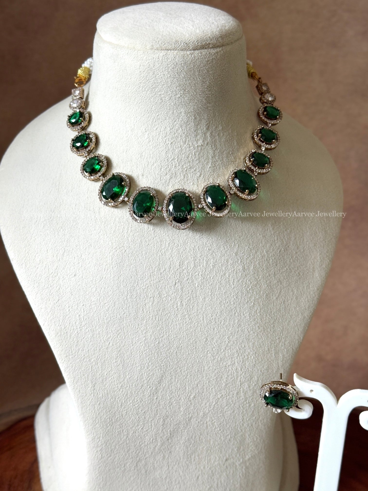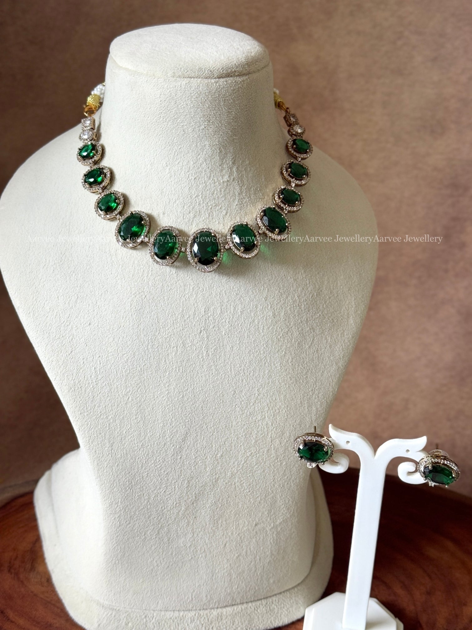 ELEGANT ROUND DESIGN GREEN STONE VICTORIAN NECKLACE SET