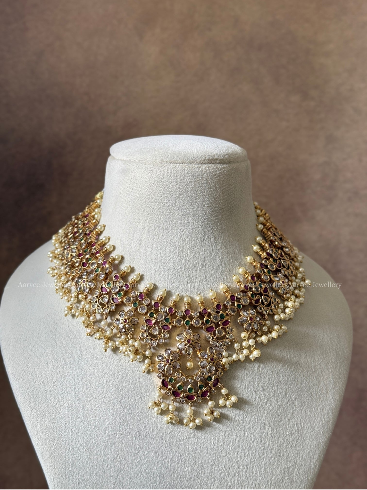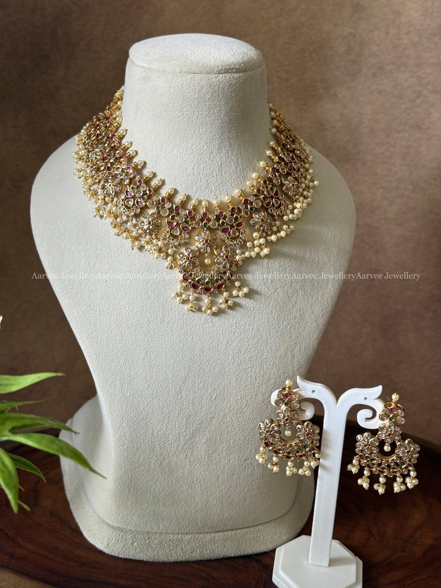 Floral Design Gutta Pusalu Necklace Set with Intricate Detailing
