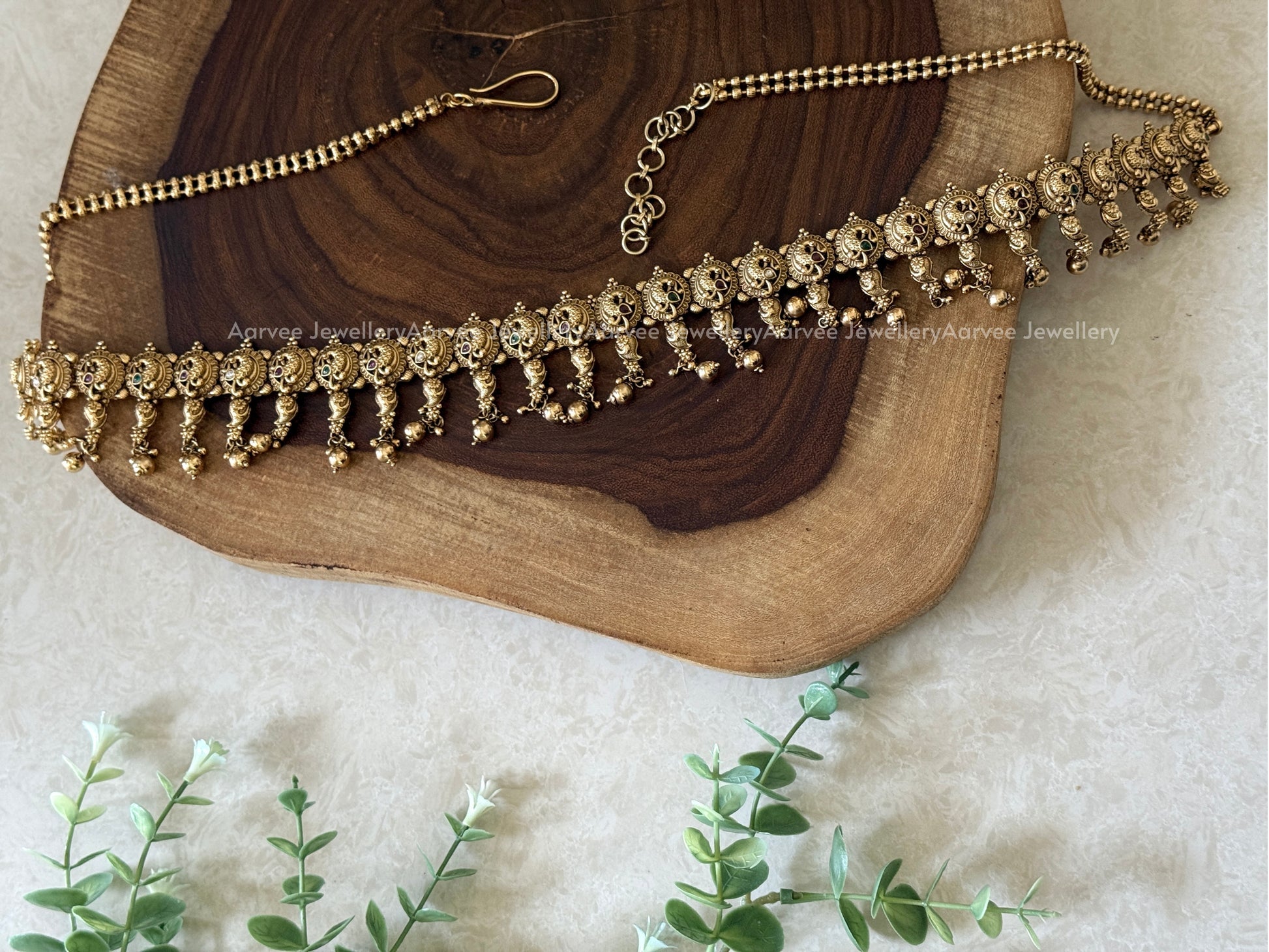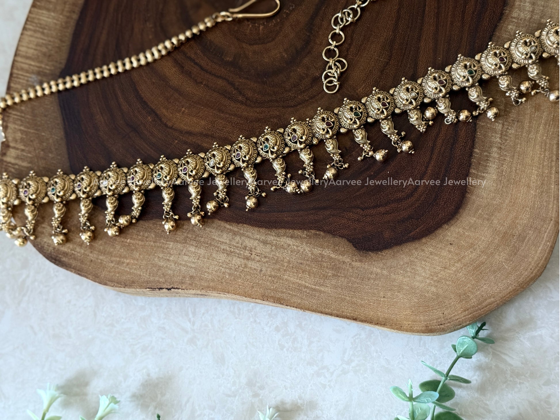 Traditional Gold Waist Chain with Peacock Motif and Matching Gold Beads