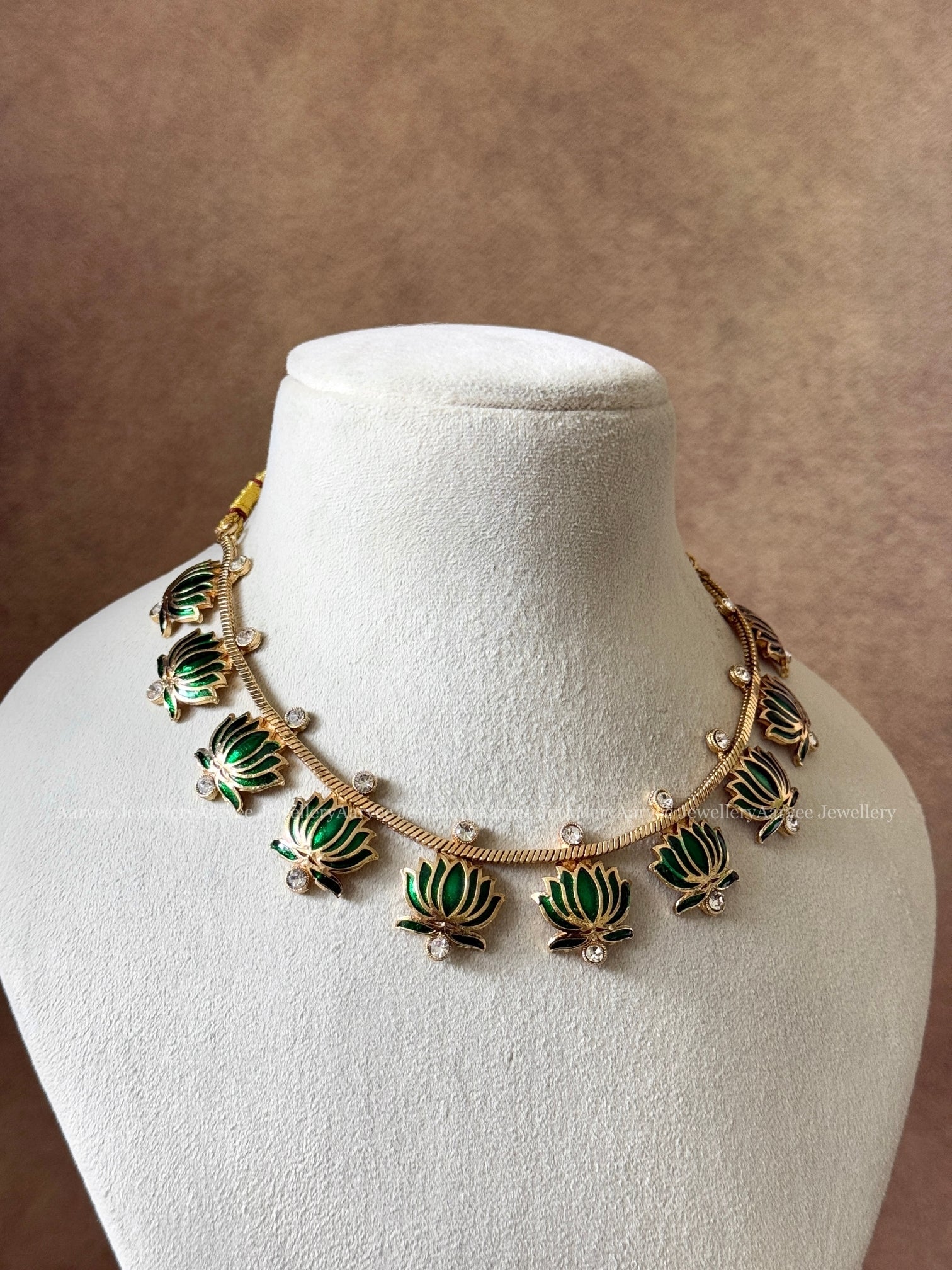 GOLD CHAIN GREEN LOTUS NECKLACE SET - PREMIUM