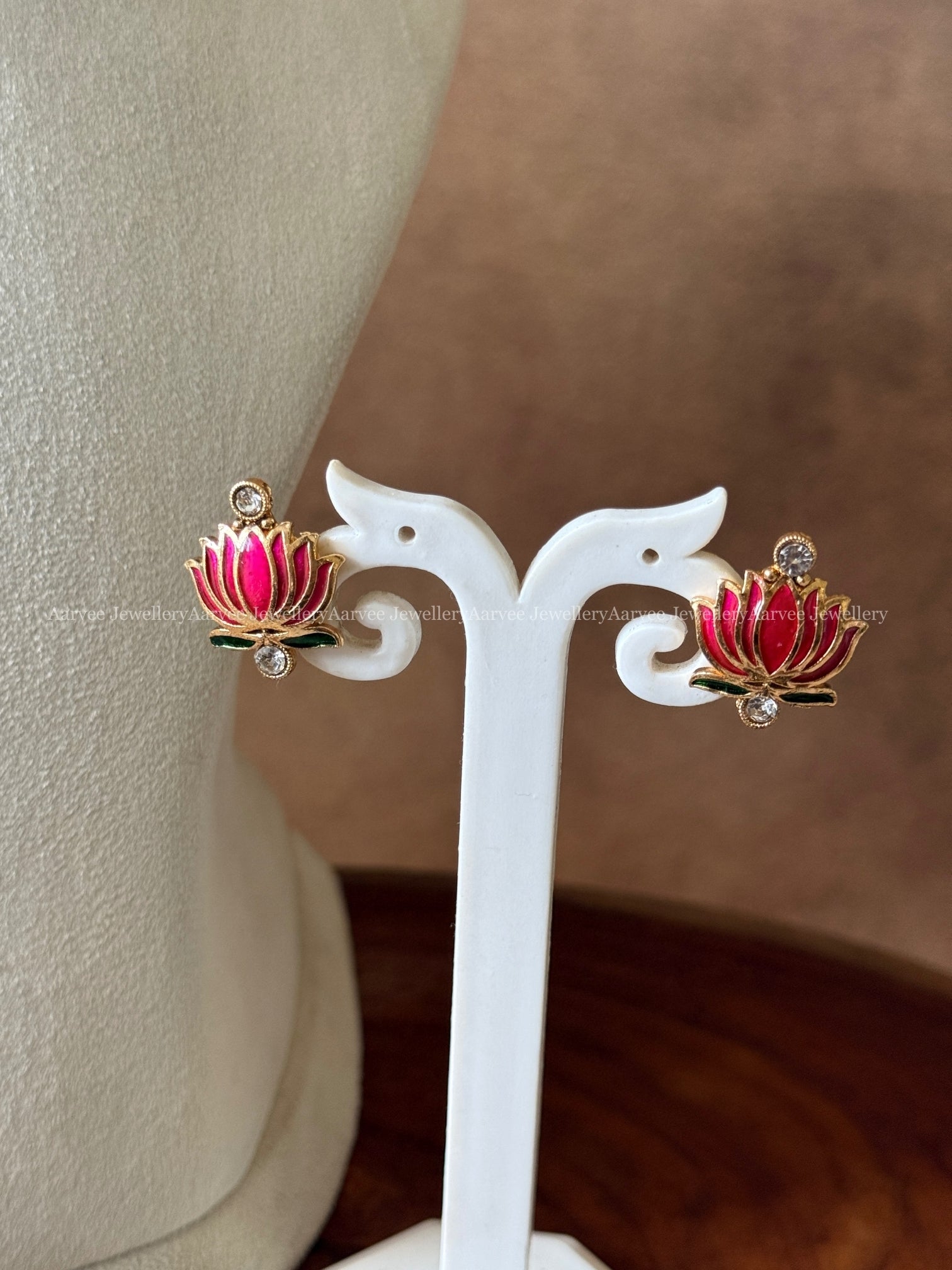 GOLD CHAIN PINK LOTUS NECKLACE SET - PREMIUM