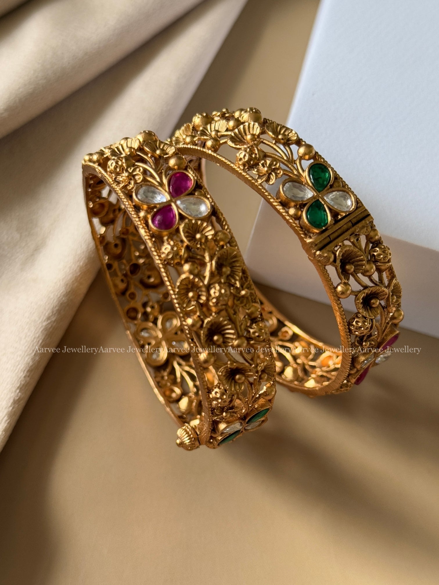 GOLD FINISH BANGLE IN FLORAL DESIGN