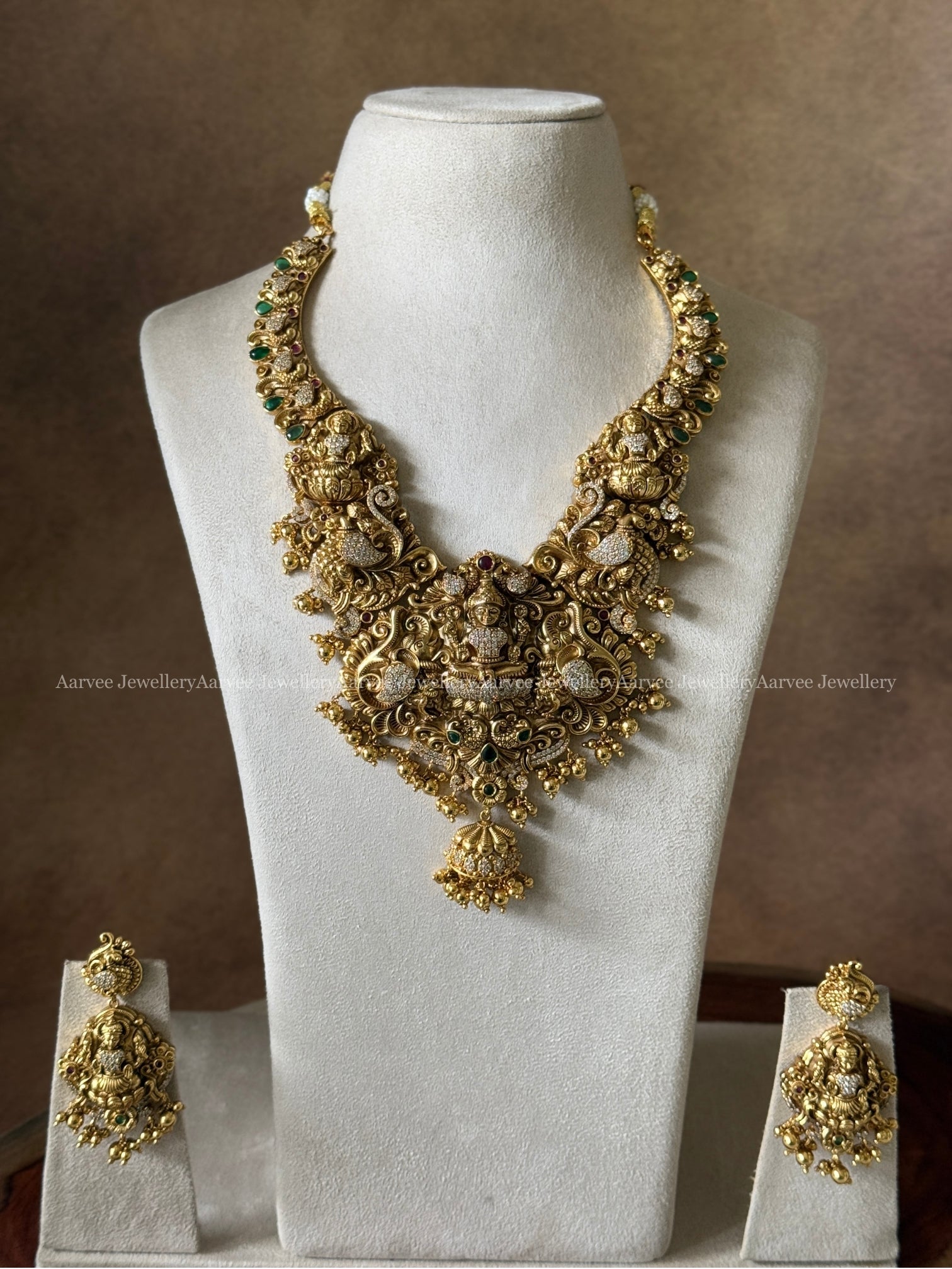Antique Gold Plated Broad Kanti Necklace Set Embellished with Lakshmi Pendant