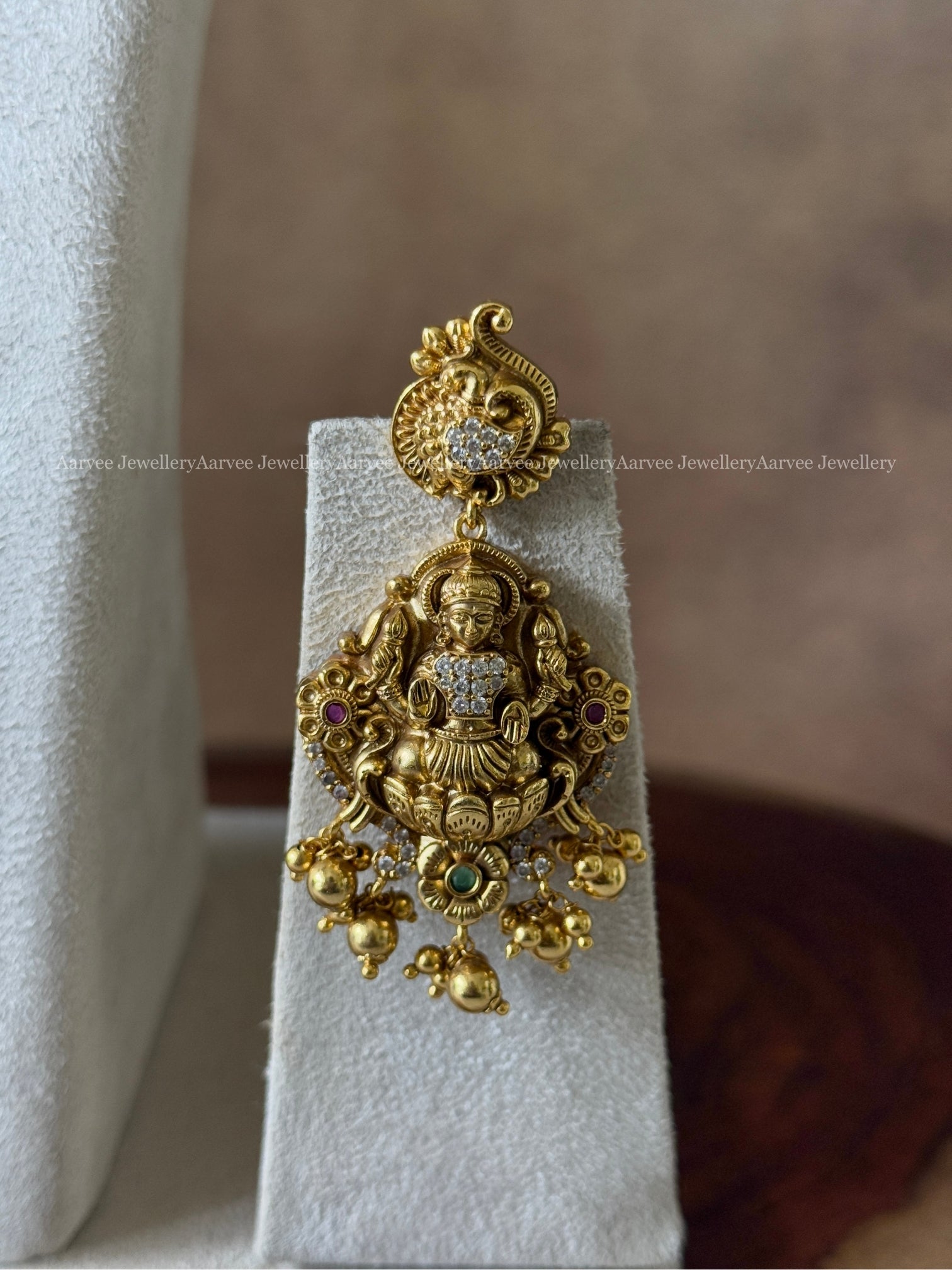 GOLD FINISH BROAD KANTI NECKLACE SET WITH LAKSHMI PENDANT
