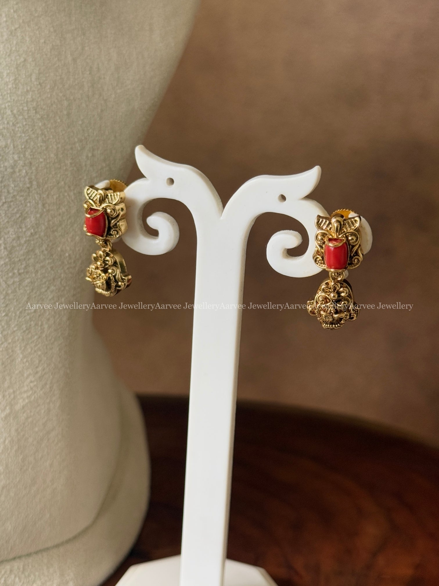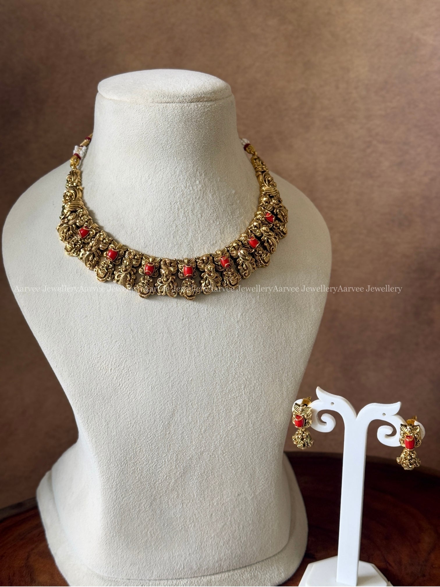 Graceful Gold Finish Necklace Set Embellished with Striking Coral Accents