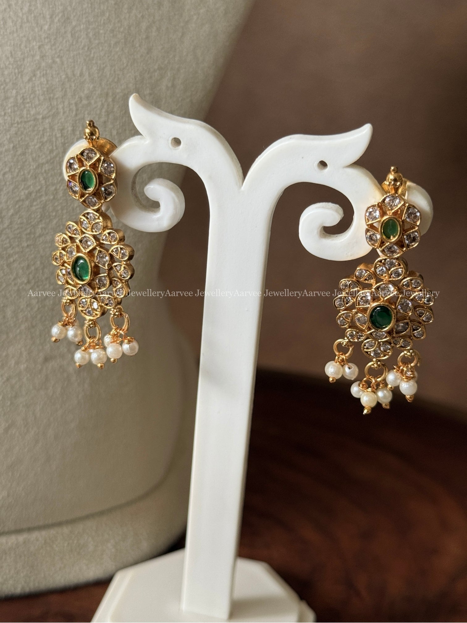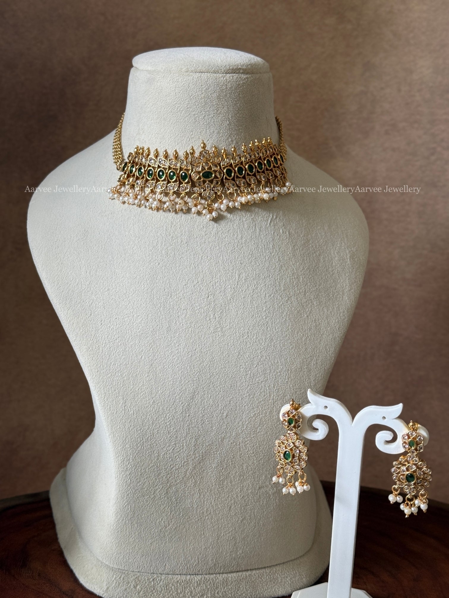 Contemporary Gold Finish Choker Set Embellished with CZ and Green Stones
