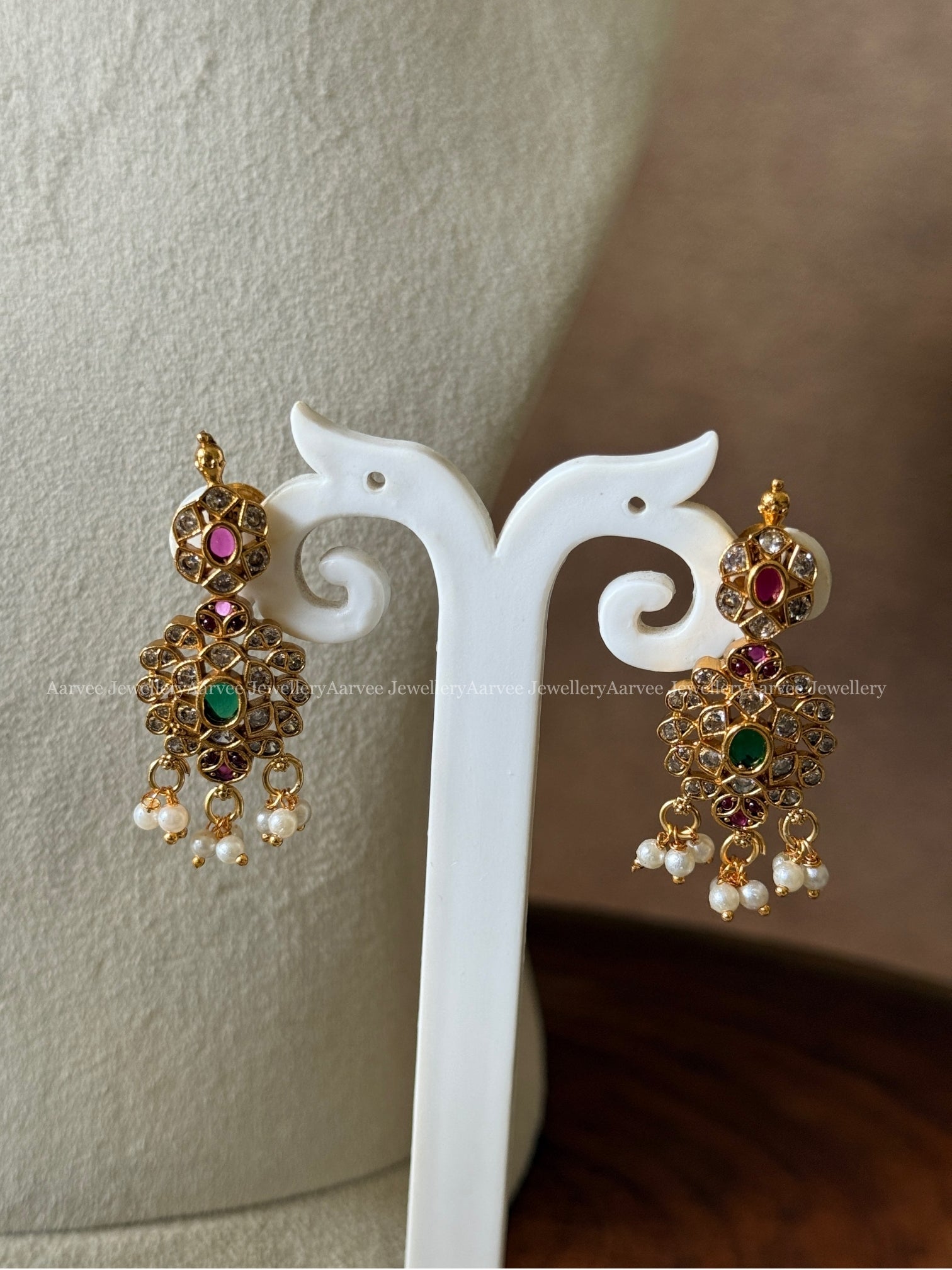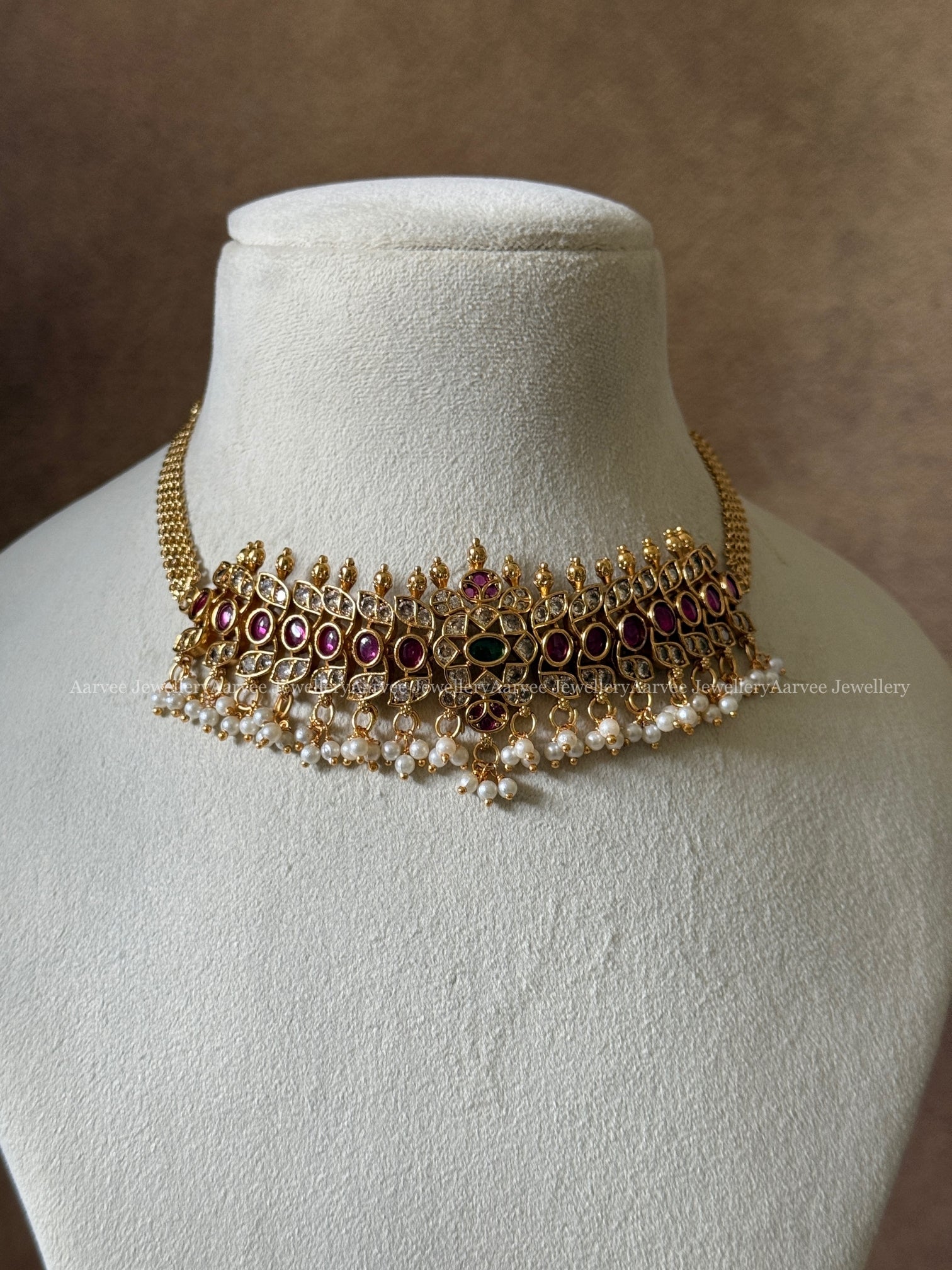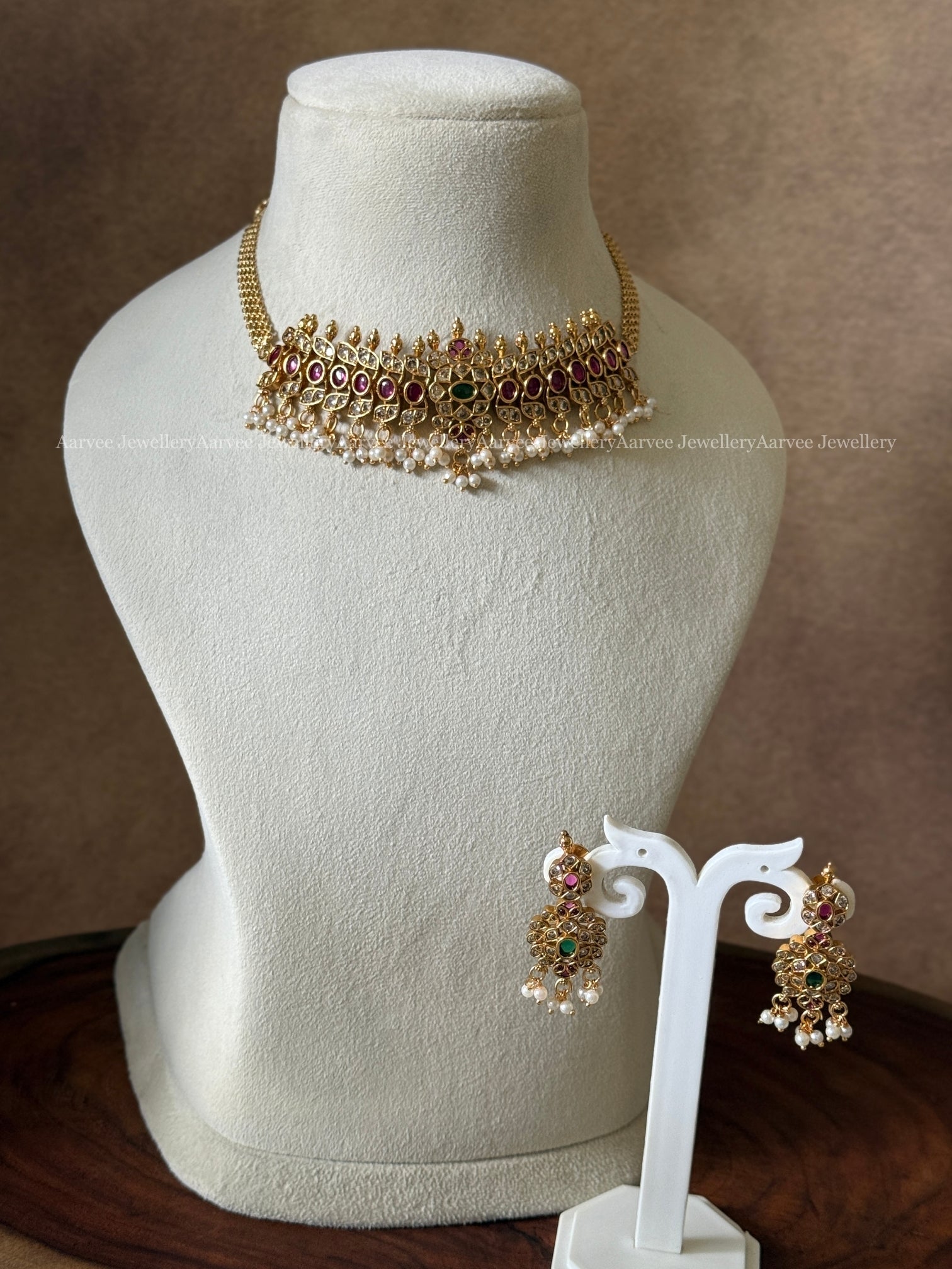 GOLD FINISH CZ STONES MINIMAL CHOKER SET WITH RUBY STONES