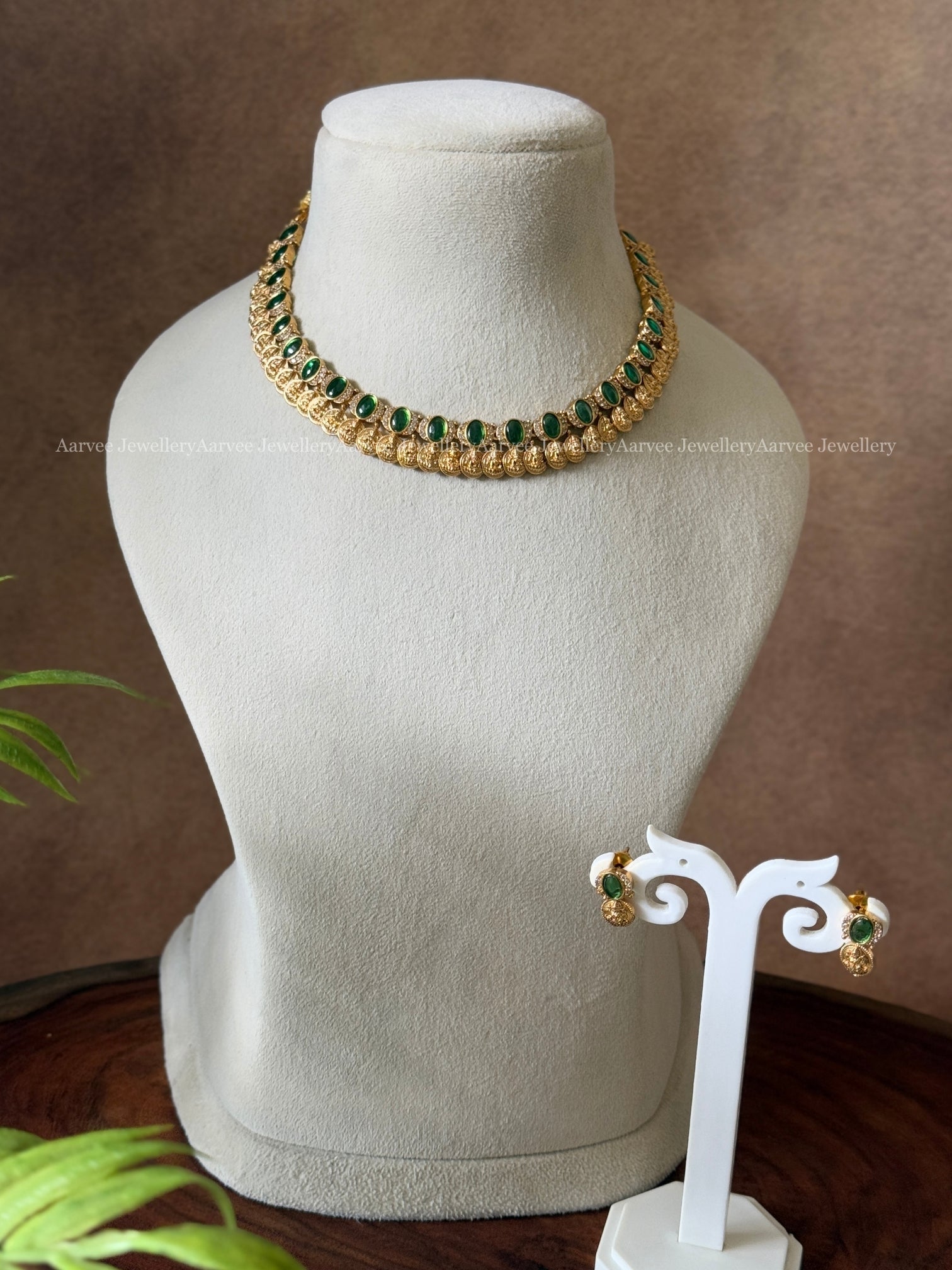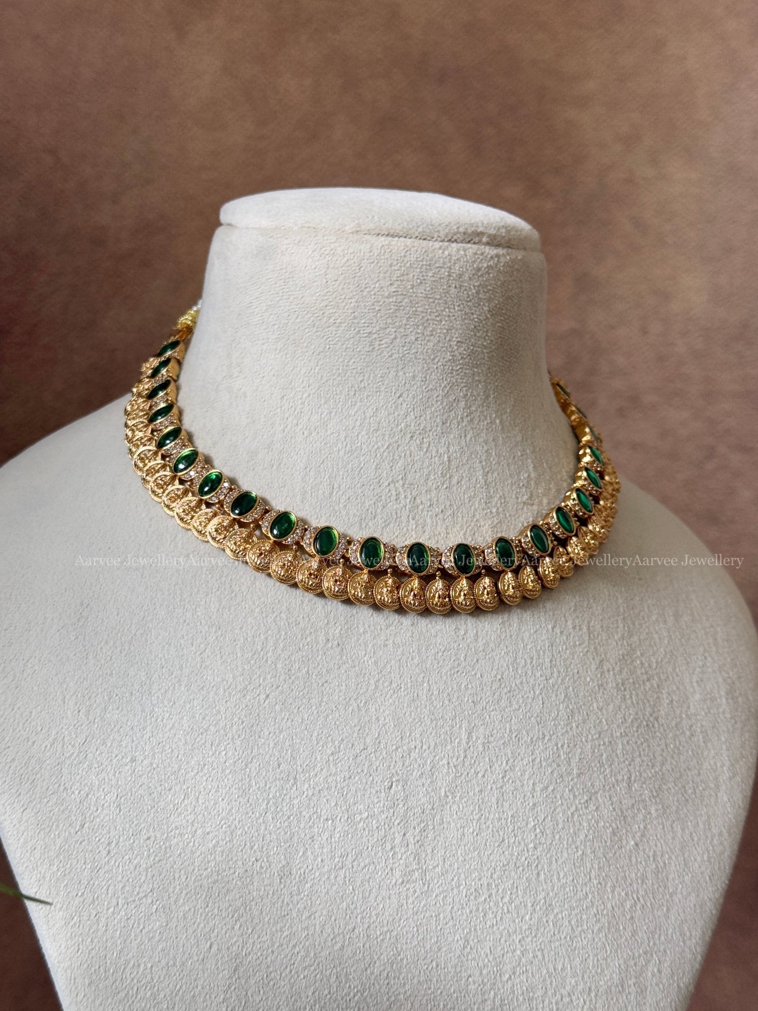 GOLD FINISH GREEN STONES MINIMAL COIN NECKLACE SET