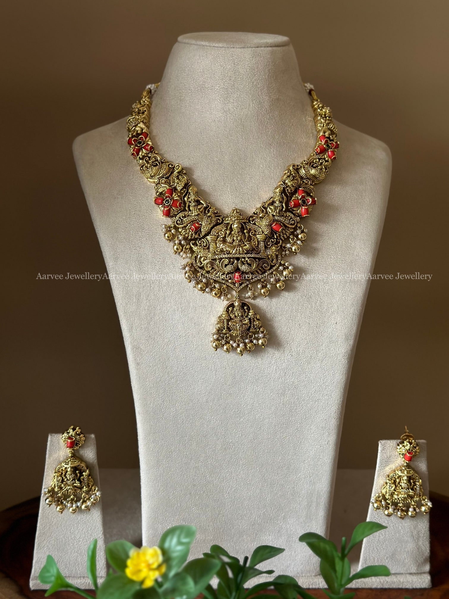 Heritage-Inspired Nagas Necklace in Gold Finish with Kanti Design and Coral Detailing