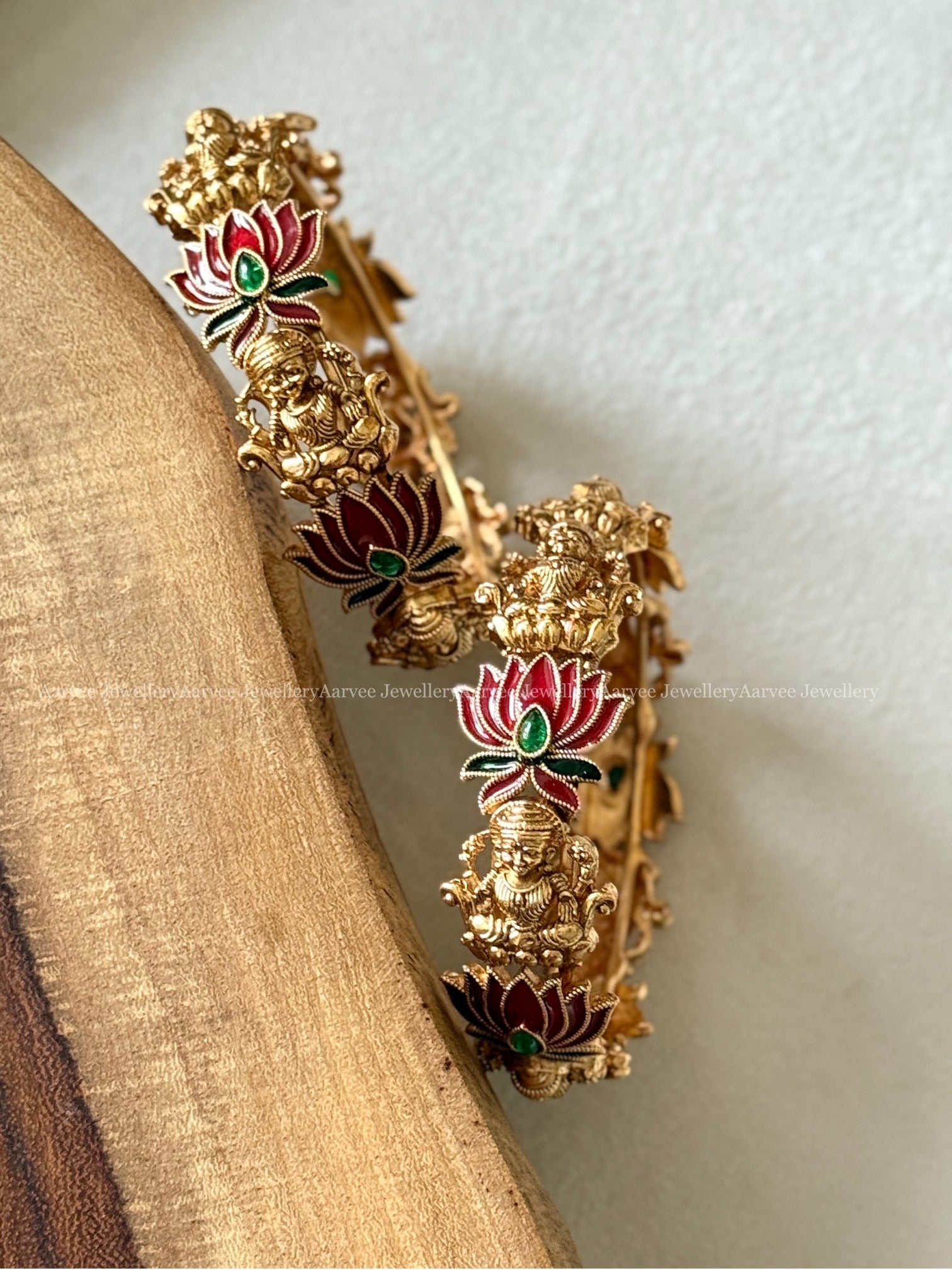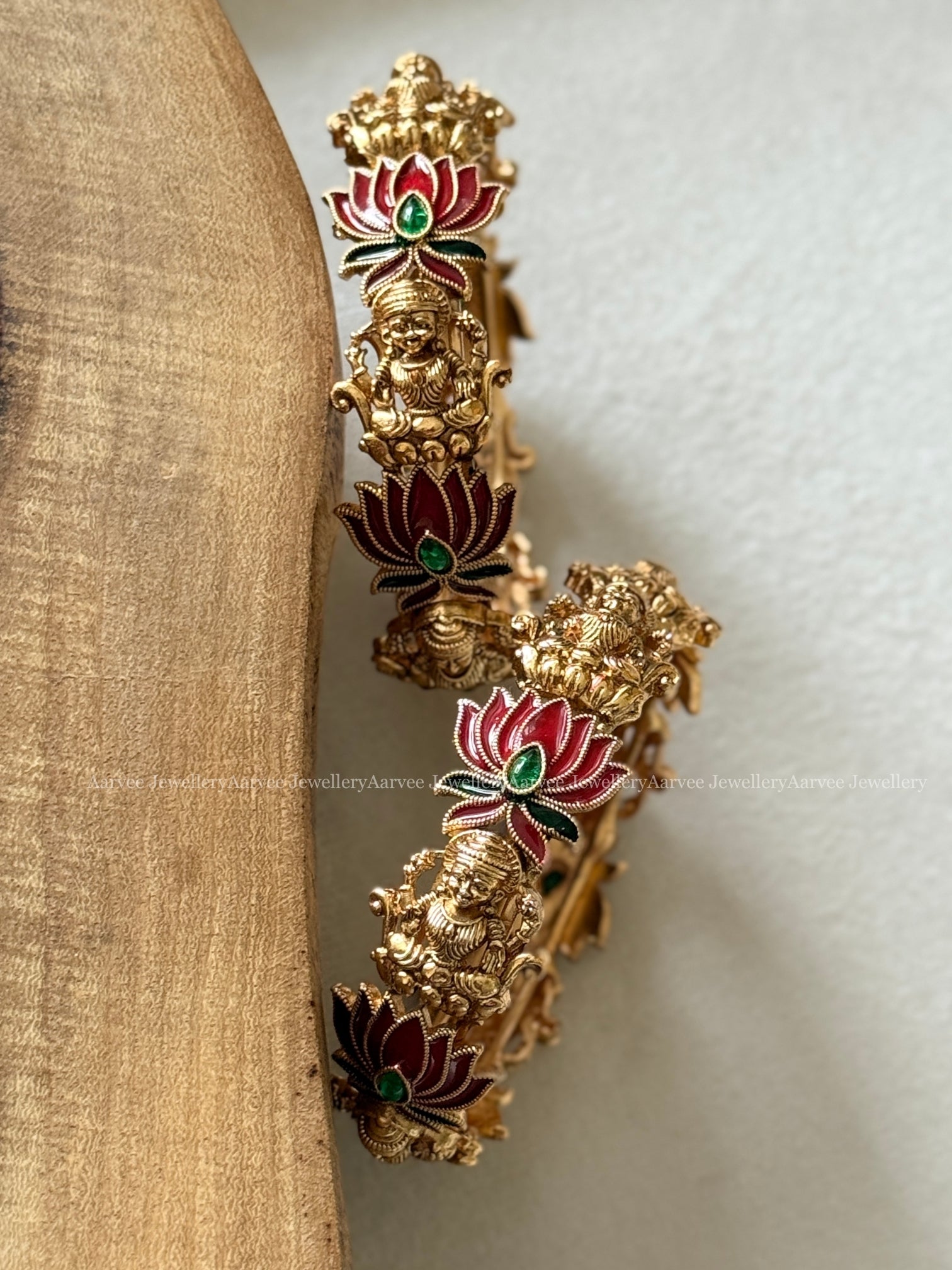 GOLD FINISH LAKSHMI & LOTUS BANGLES
