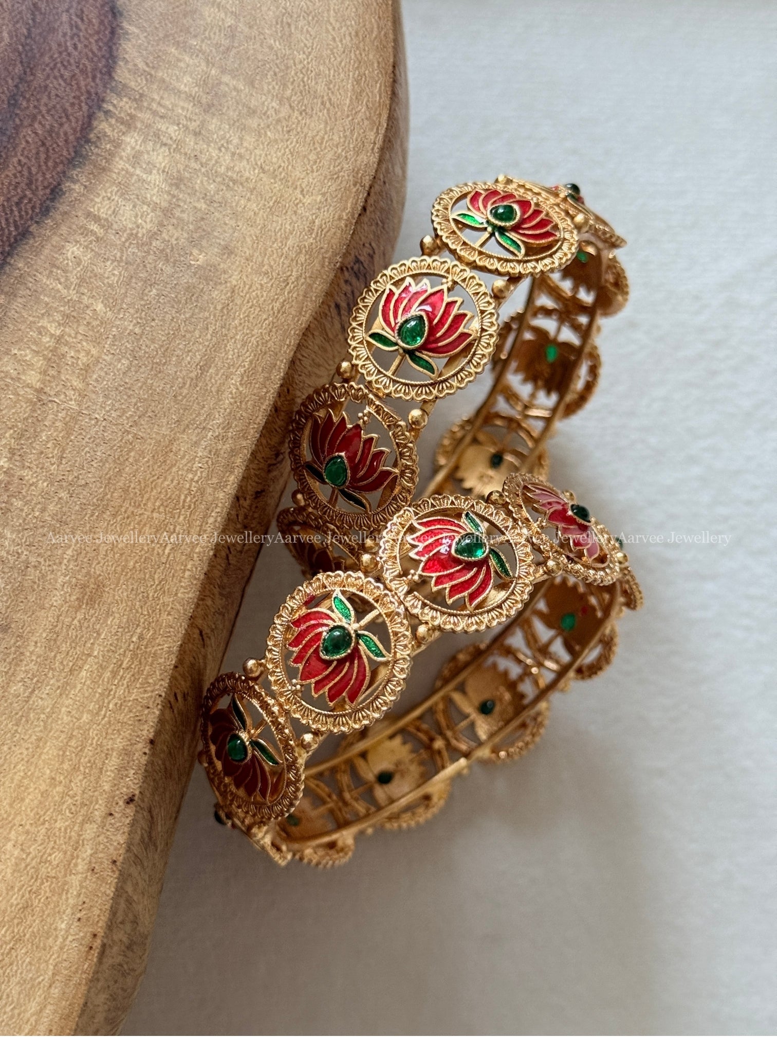 Elegant Gold Bangles Inspired by the Symbolic Lotus Flower