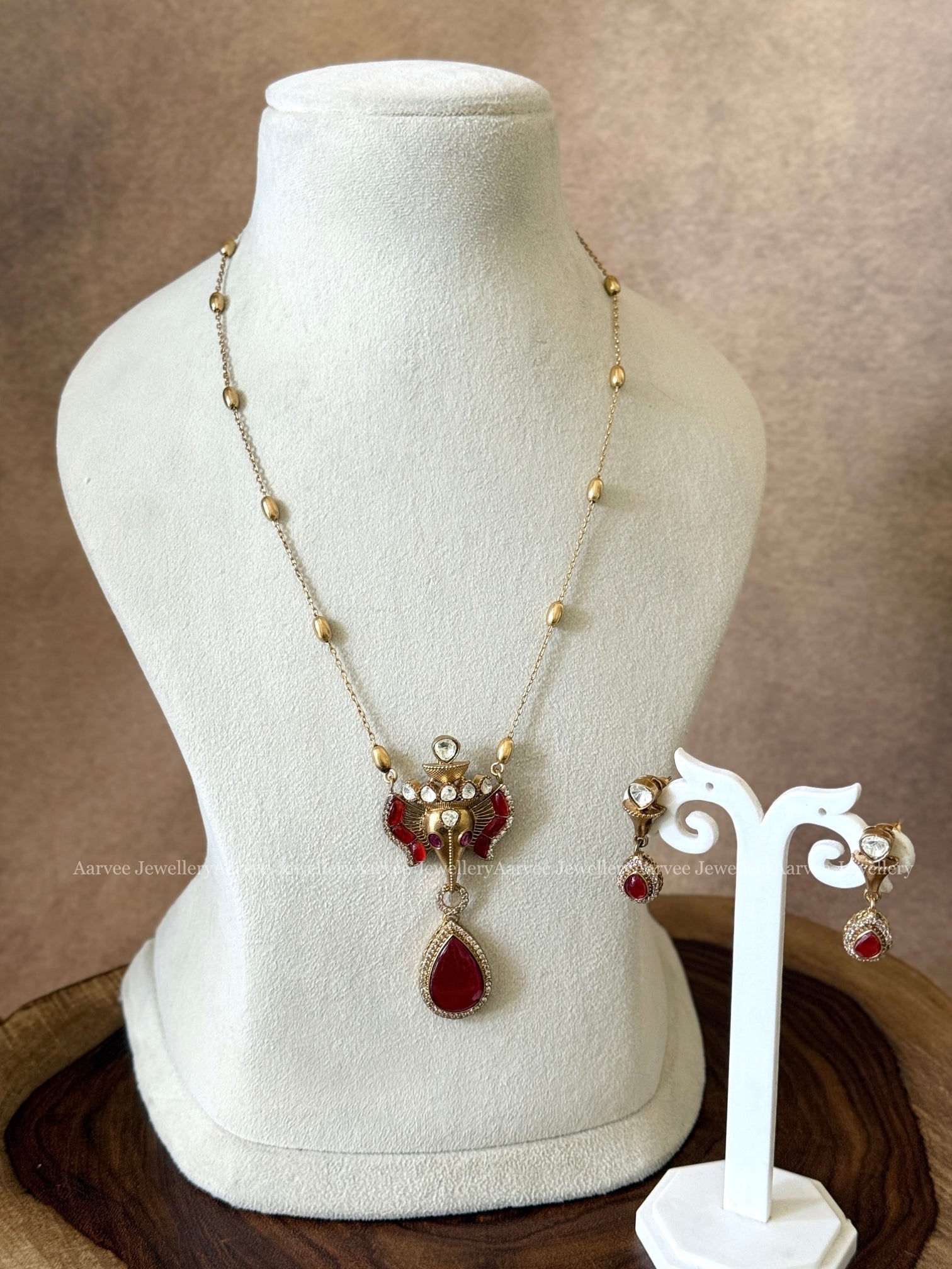 GOLD MID LENGTH CHAIN SET WITH ELEPHANT PENDANT IN RUBY STONES
