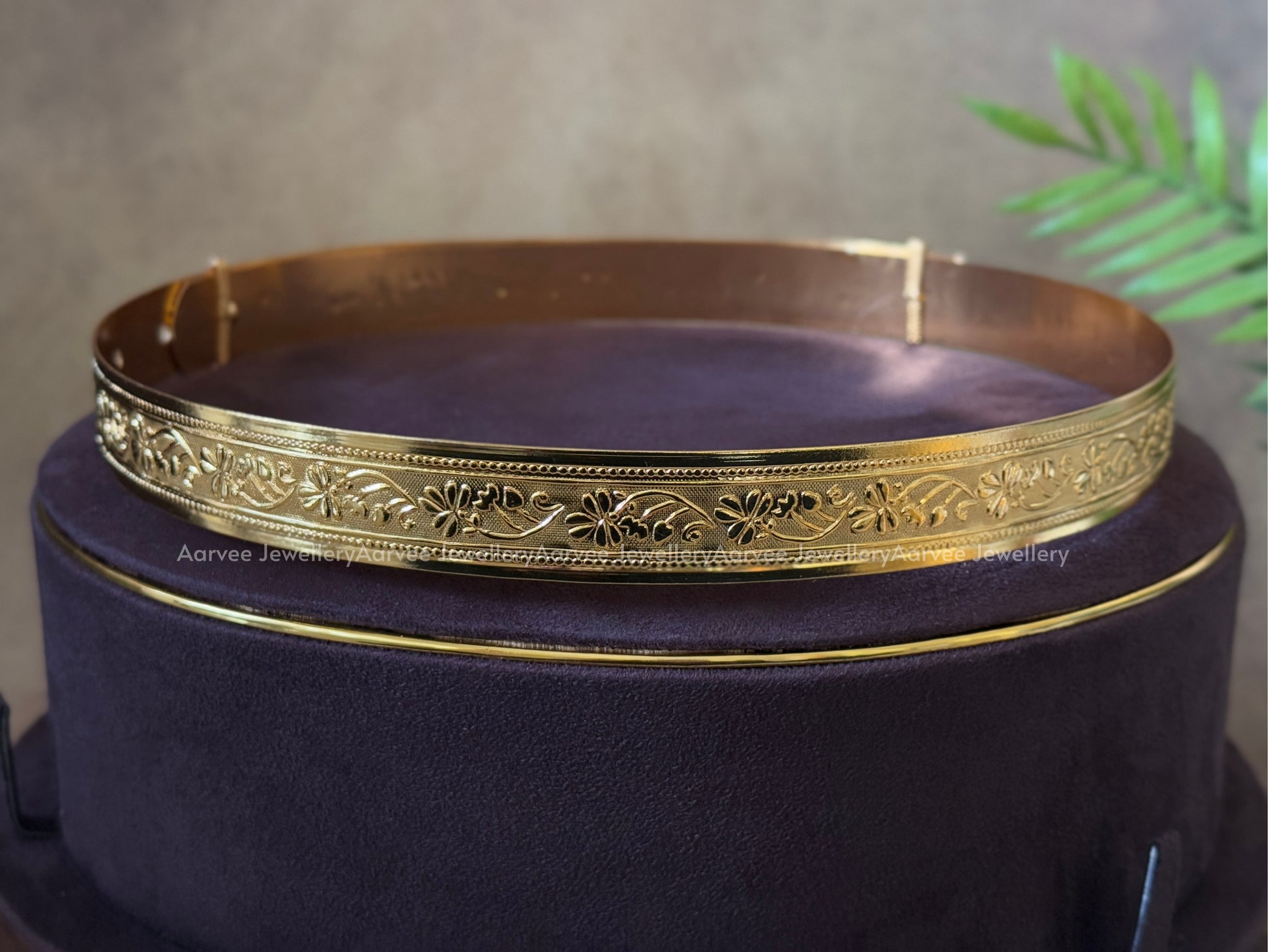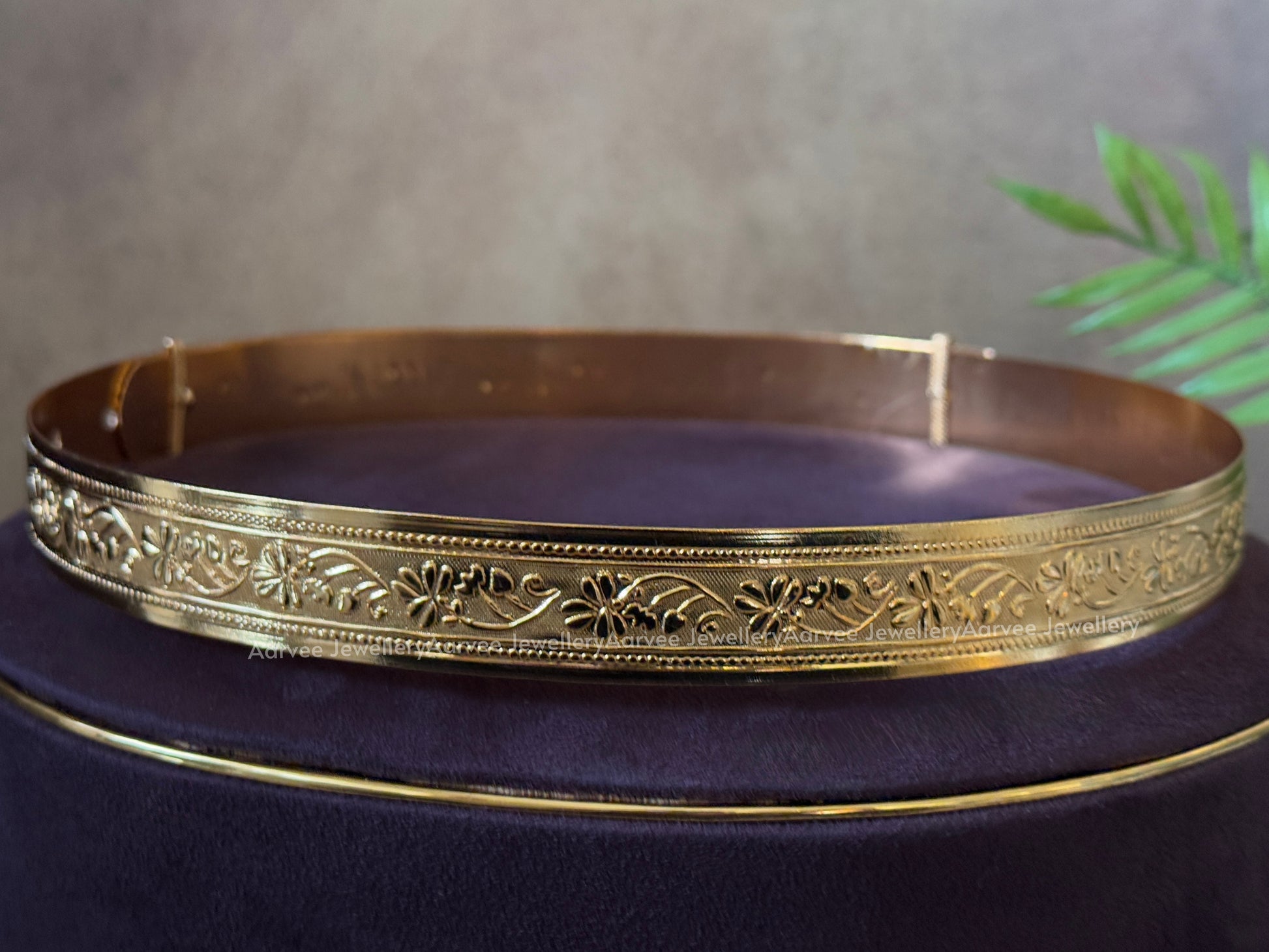 GOLD TONE FLORAL DESIGN PLAIN WAIST BELT