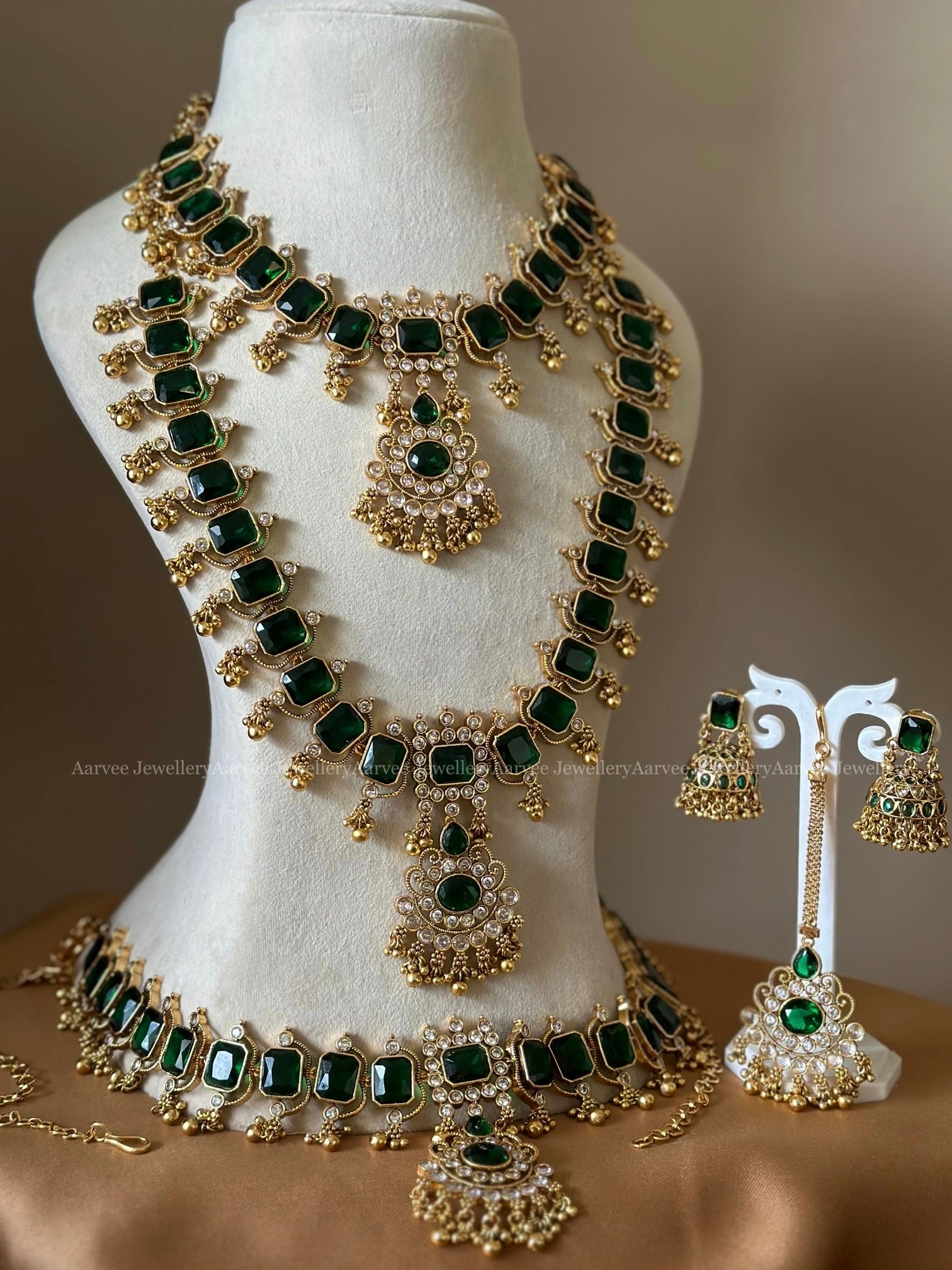 GREEN STONE SEMI BRIDAL JEWELLERY SET
