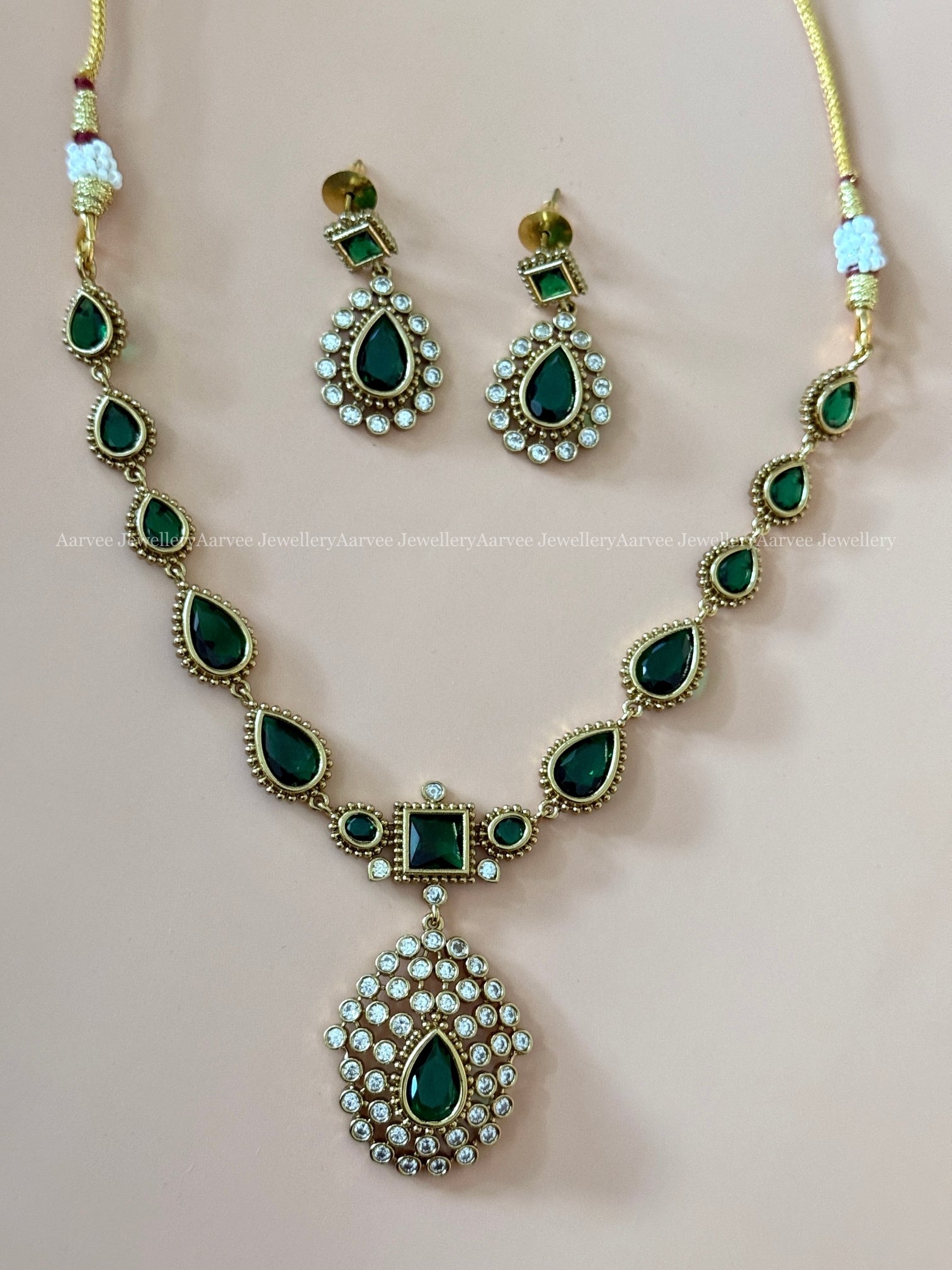 CZ GREEN STONE VICTORIAN TEAR DROP NECKLACE SET