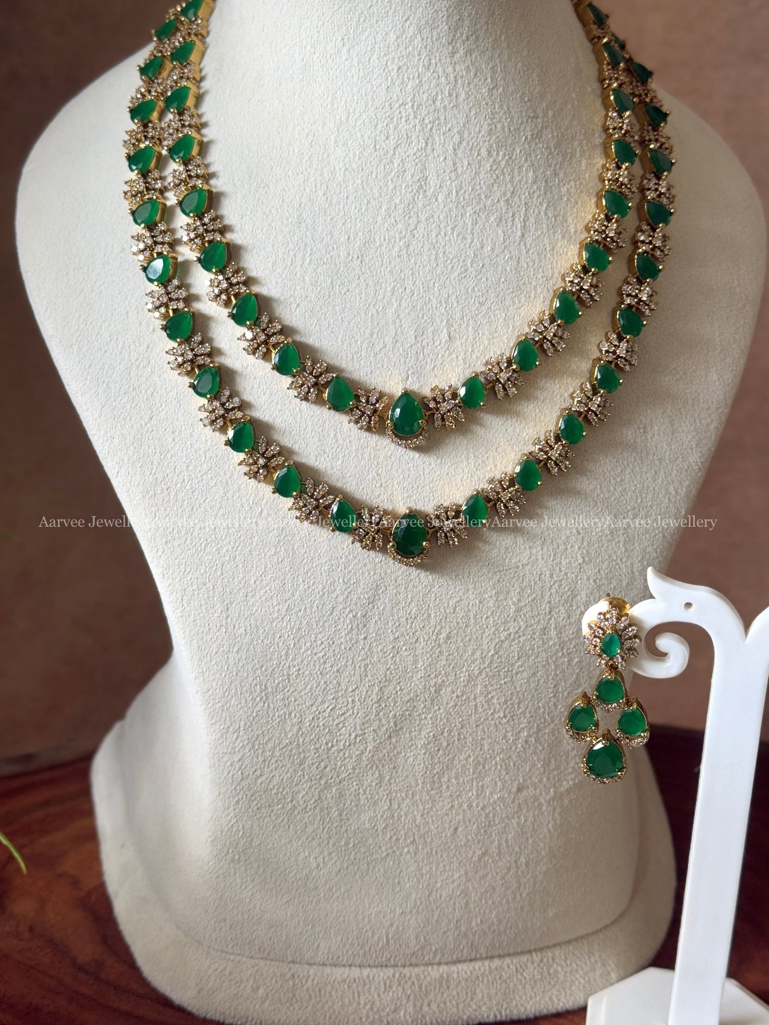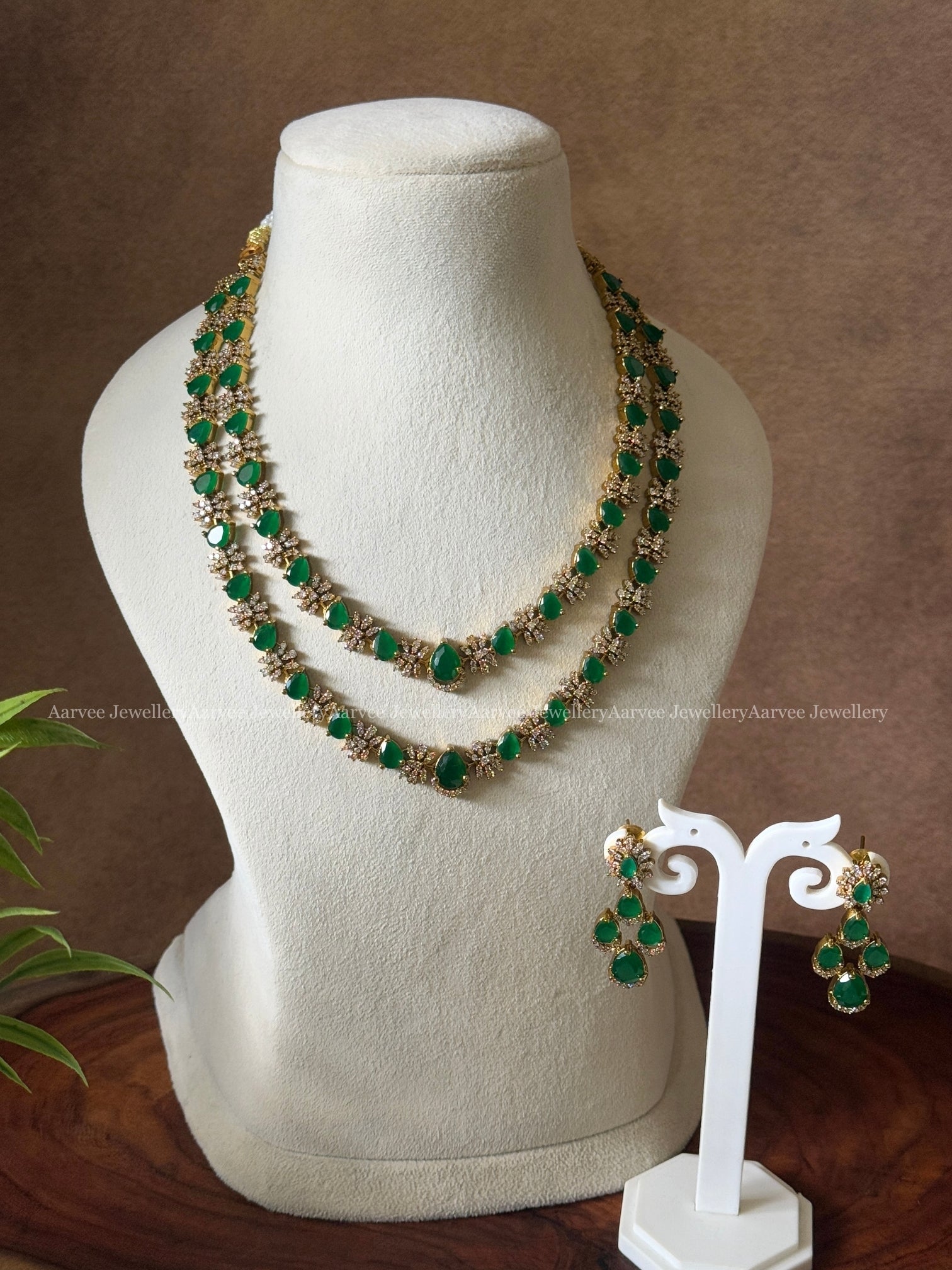 GREEN STONES VICTORIAN TWO LAYERED NECKLACE SET