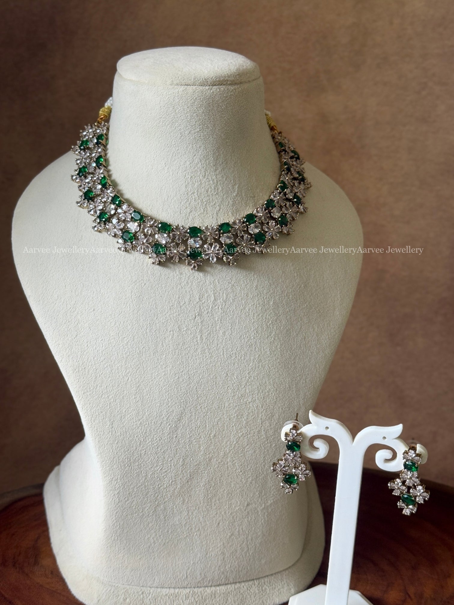 GREEN & WHITE STONES VICTORIAN NECKLACE SET