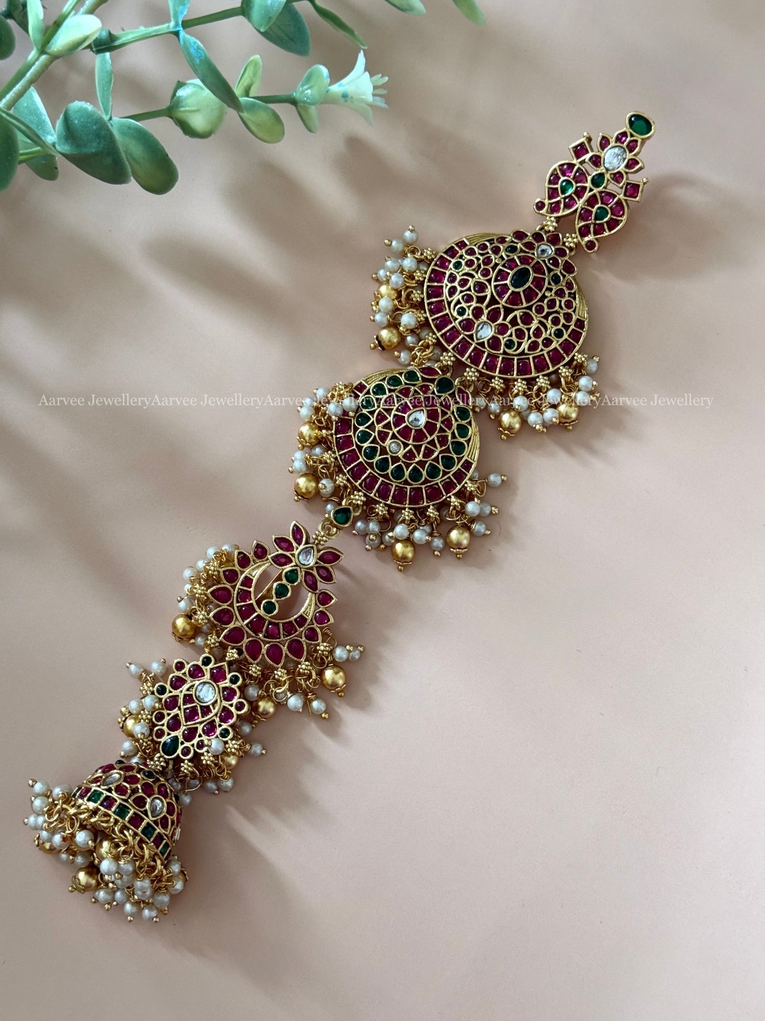 Traditional Mango & Lotus Design Hair Ornament Featuring Vibrant Kemp Stones and Gold Bead Accents