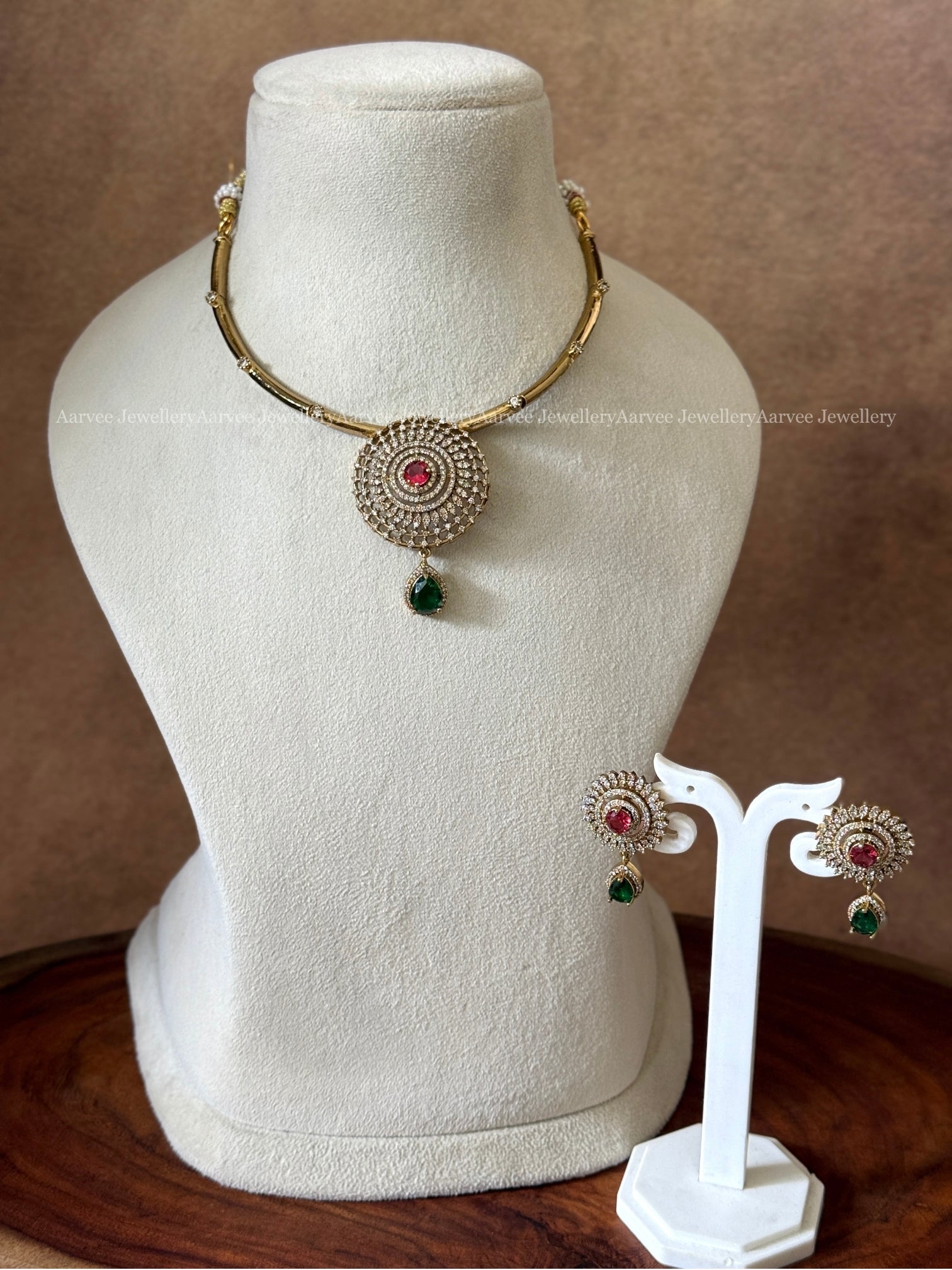 Elegant Red Hasli Necklace with Cubic Zirconia Accents