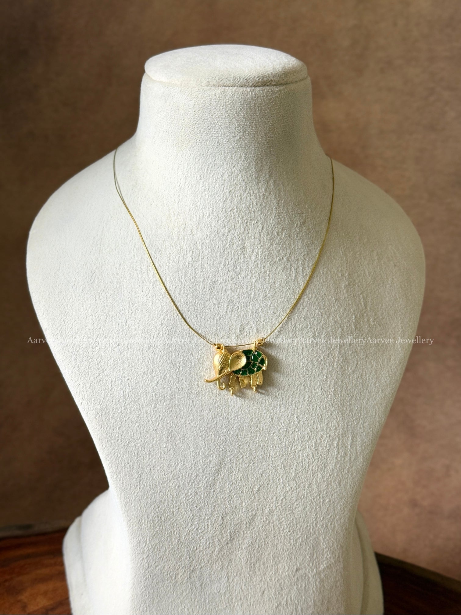 INVISIBLE CHAIN WITH GREEN STONE ELEPHANT PENDANT