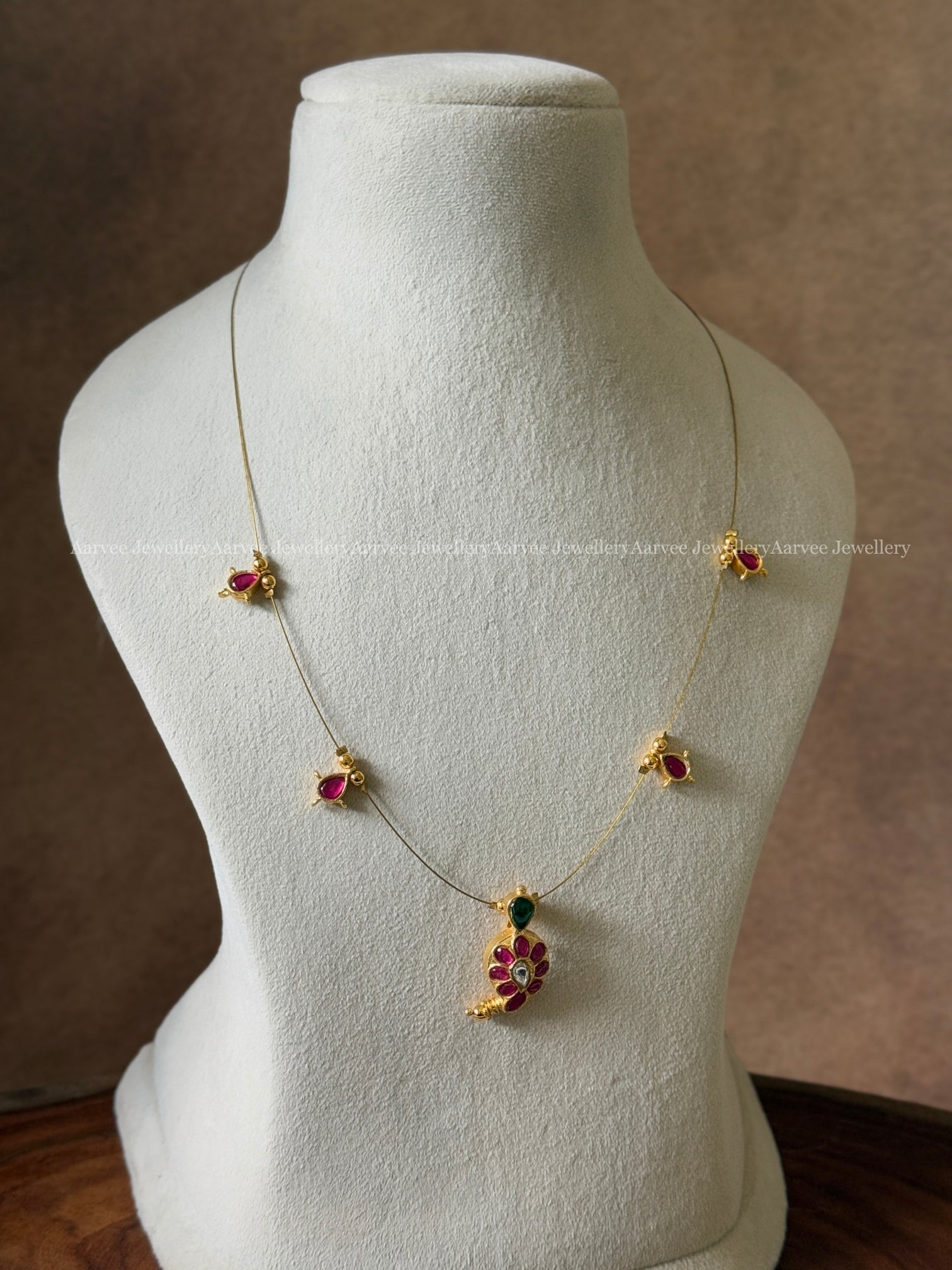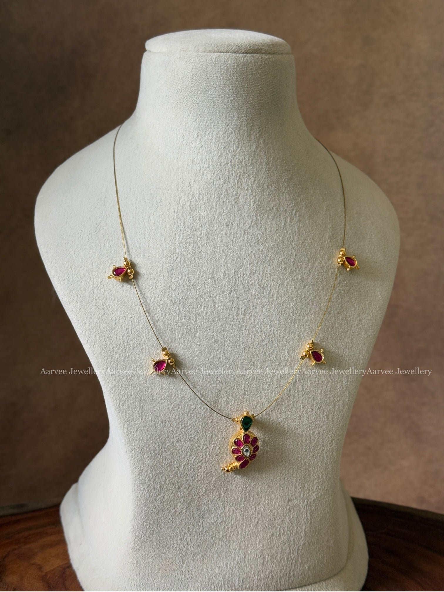 INVISIBLE CHAIN WITH JADAU KUNDAN RUBY STONE MANGO MOTIF PENDANT