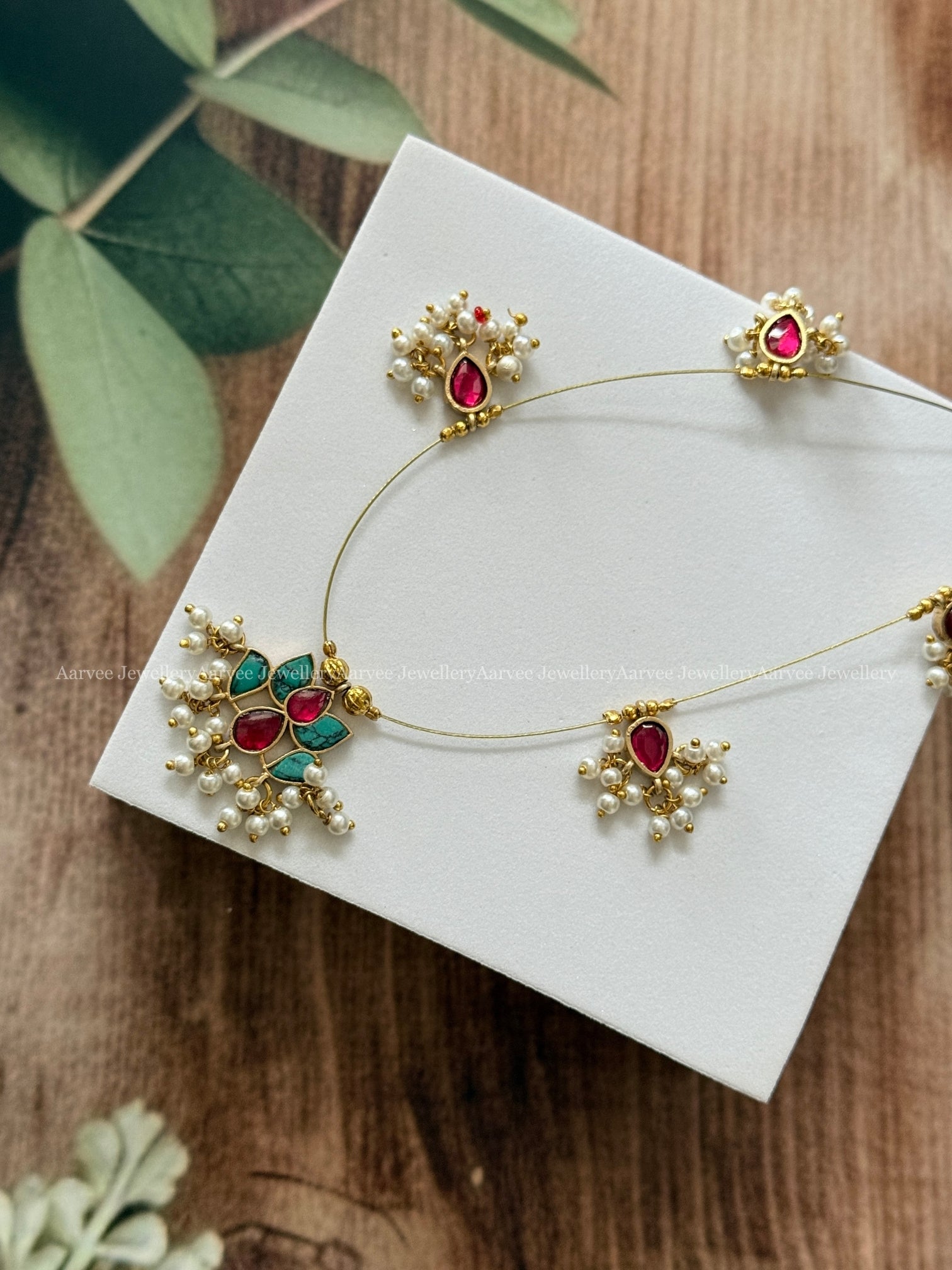 Elegant Invisible Chain with Lotus Pendant Highlighted by Turquoise and Pink Kundan