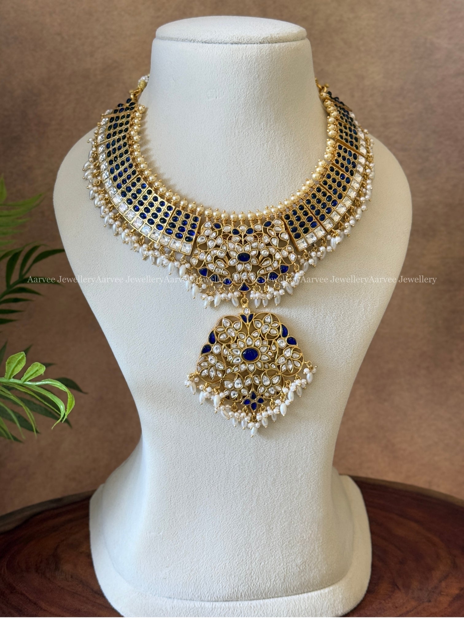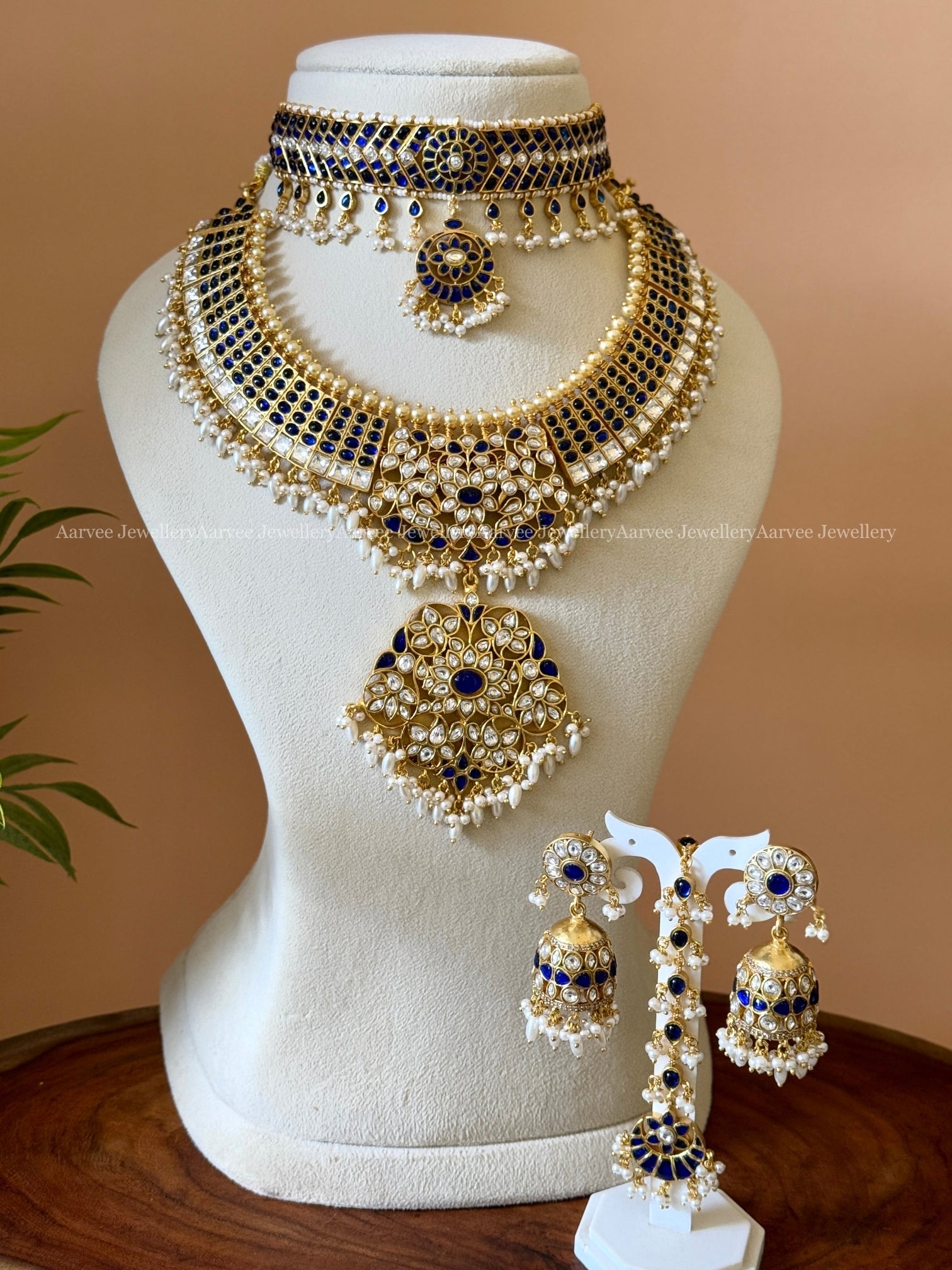 Elegant Jadau Kundan bridal set with blue stones and pearls