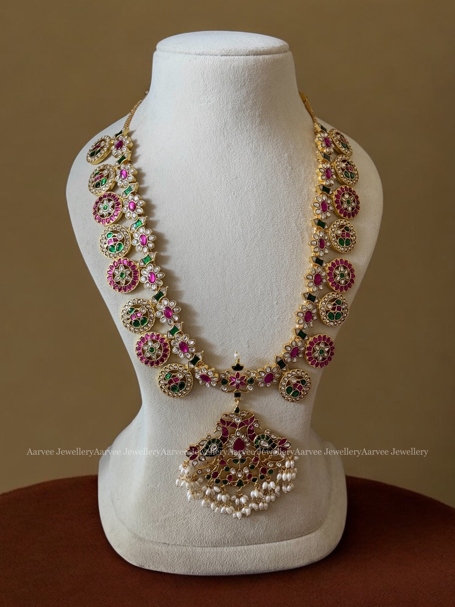 JADAU KUNDAN BUTTA HARAM WITH RED & GREEN STONES AND PEARLS