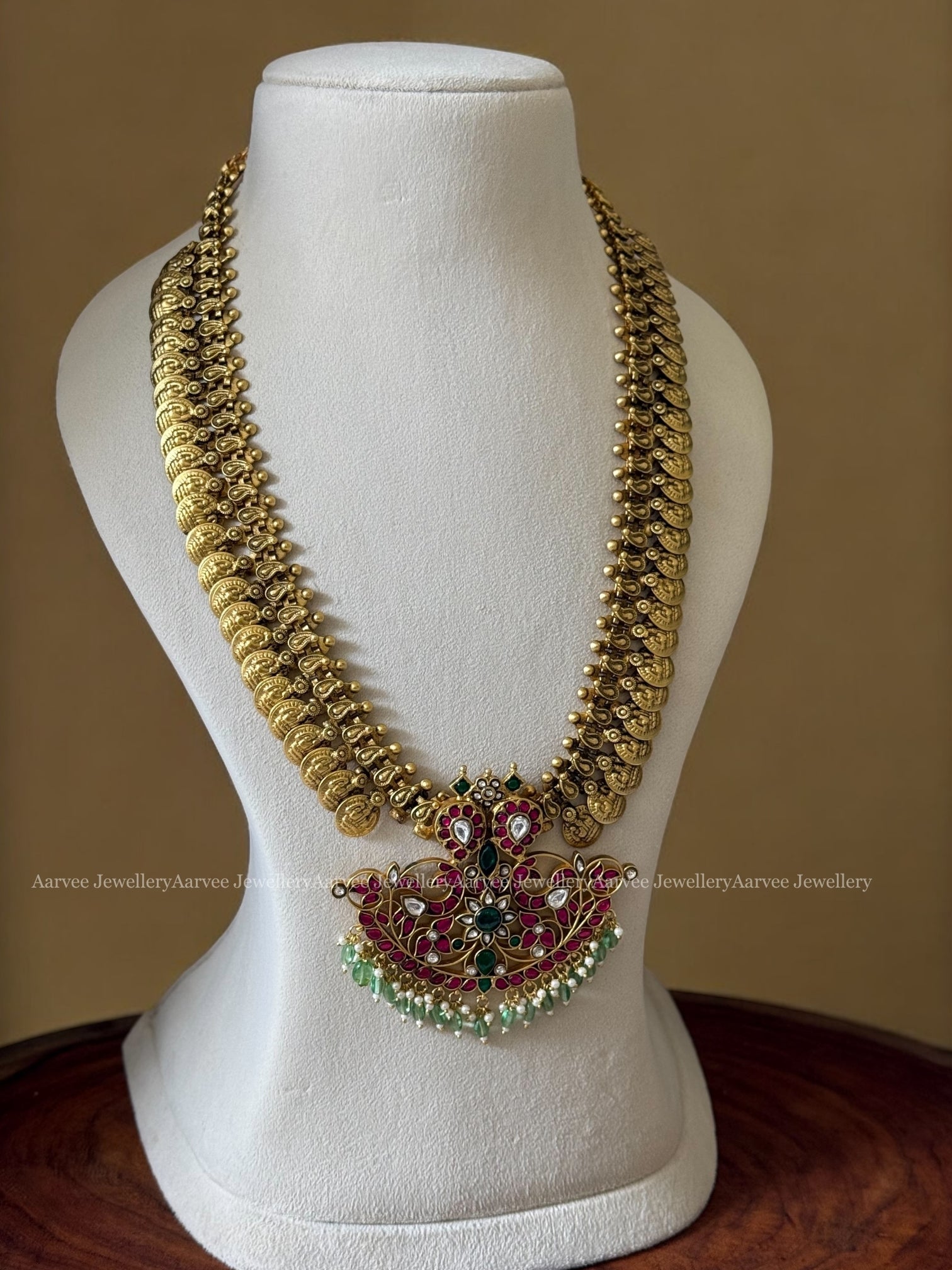 JADAU KUNDAN GOLD COIN MID-LENGTH CHAIN WITH MANGO MOTIF PENDANT & PASTEL BEADS