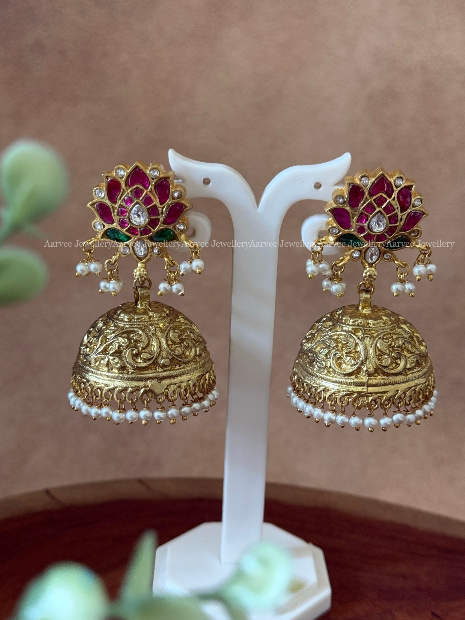 JADAU KUNDAN LOTUS JHUMKI WITH RUBY STONES