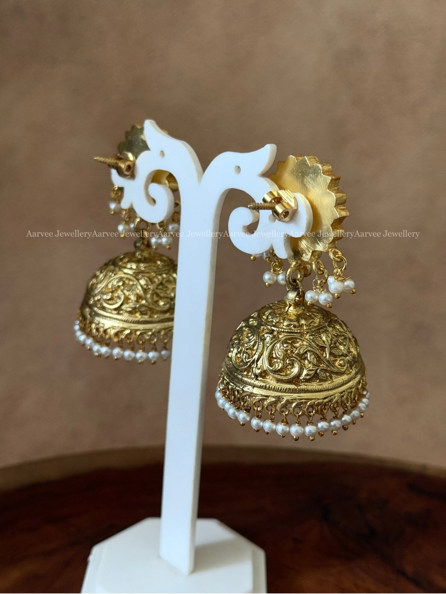 Elegant Lotus Design Jhumkis in Jadau Kundan with Ruby Stones