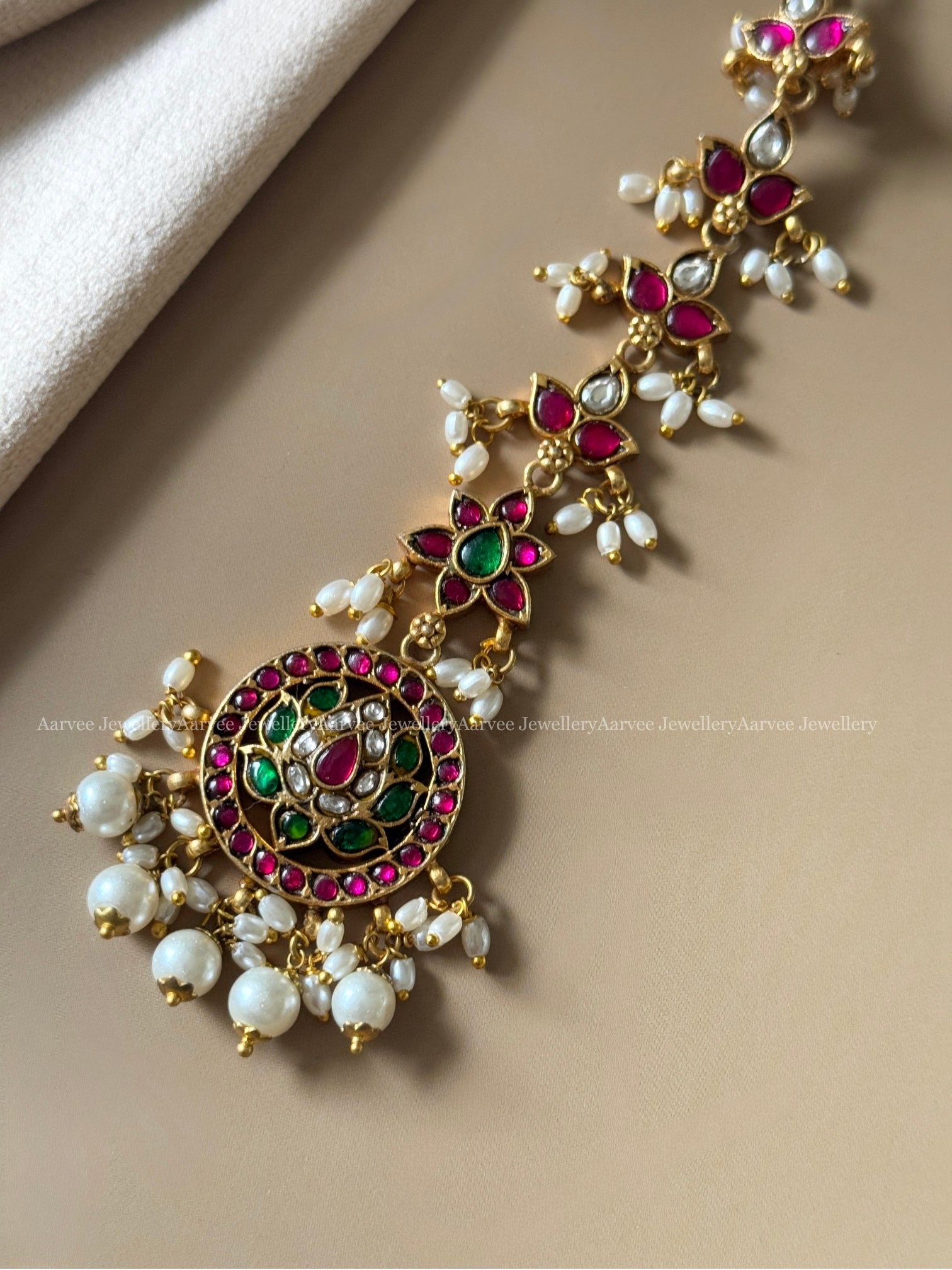 JADAU KUNDAN LOTUS TIKKA WITH PEARLS