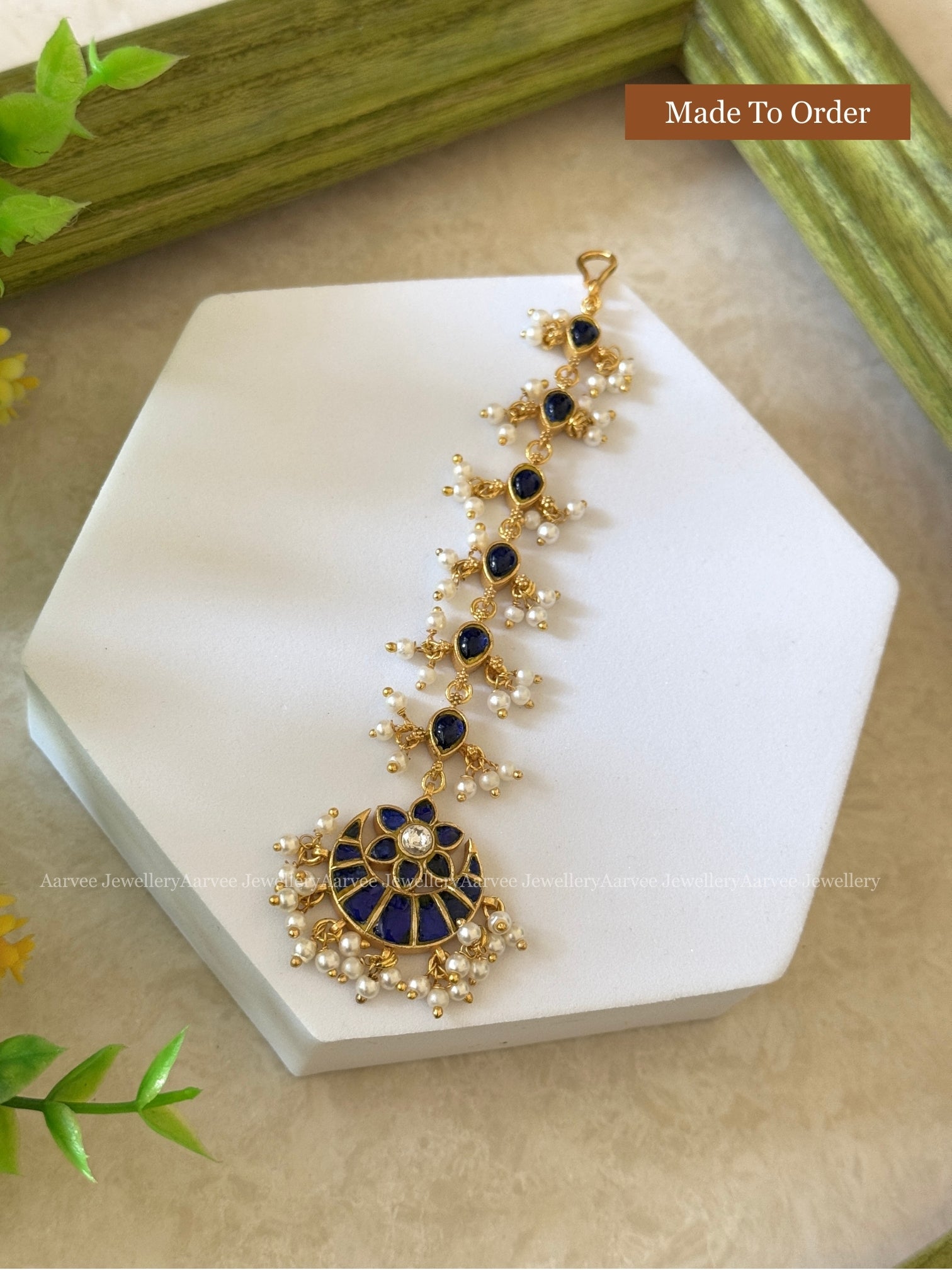JADAU KUNDAN MANGTIKKA WITH VOILET AND WHITE STONES