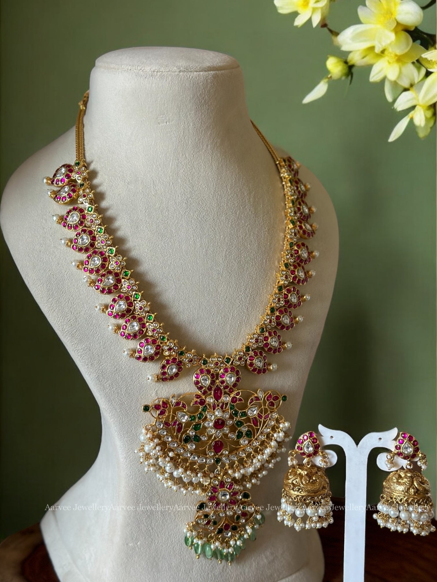 The set Contains : 1 Mid-length Haram and 1 Pair of earrings.